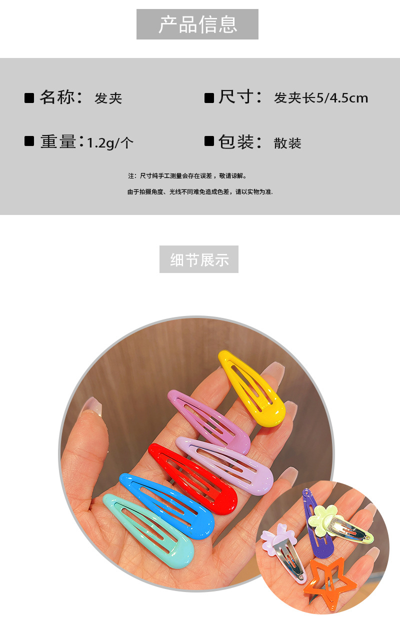 인터넷 연예인 헤어 액세서리 여성의 귀여운 컬러 헤어핀 물 떨어 다섯개 별 한국 스타일 캔디 컬러 작은 헤어핀 소녀의 앞머리 가장자리 클립
