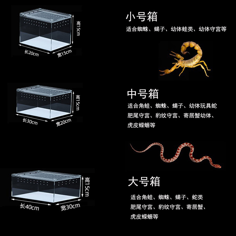 높은 빛 전송 아크릴 먹이 상자 달팽이 표범 궁전 Shougong 뿔 개구리 도마뱀 모노 요정 거북이 탱크 곤충 등반 애완 동물 상자스토어 가기