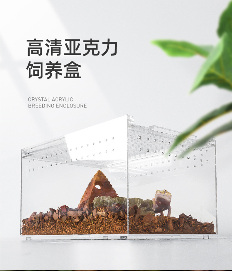 높은 빛 전송 아크릴 먹이 상자 달팽이 표범 궁전 Shougong 뿔 개구리 도마뱀 모노 요정 거북이 탱크 곤충 등반 애완 동물 상자