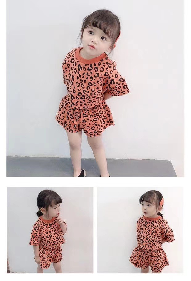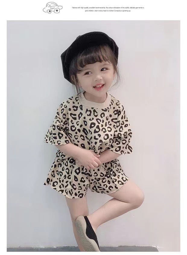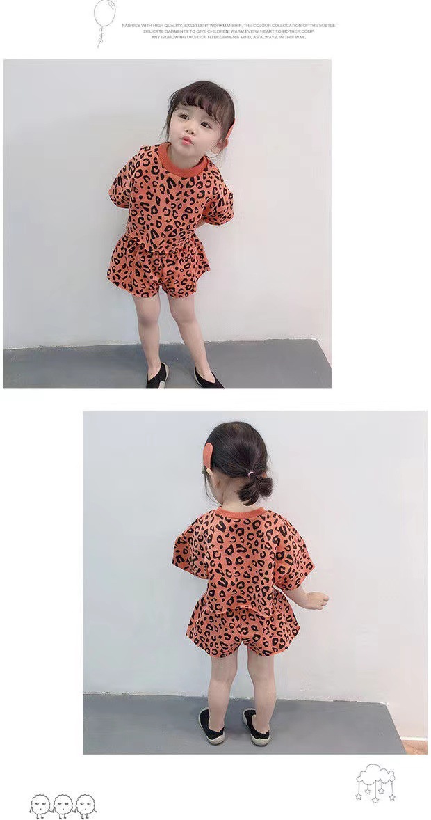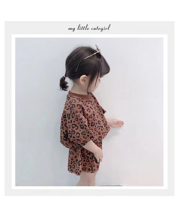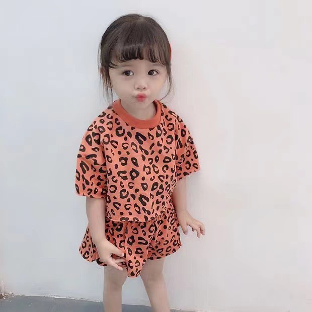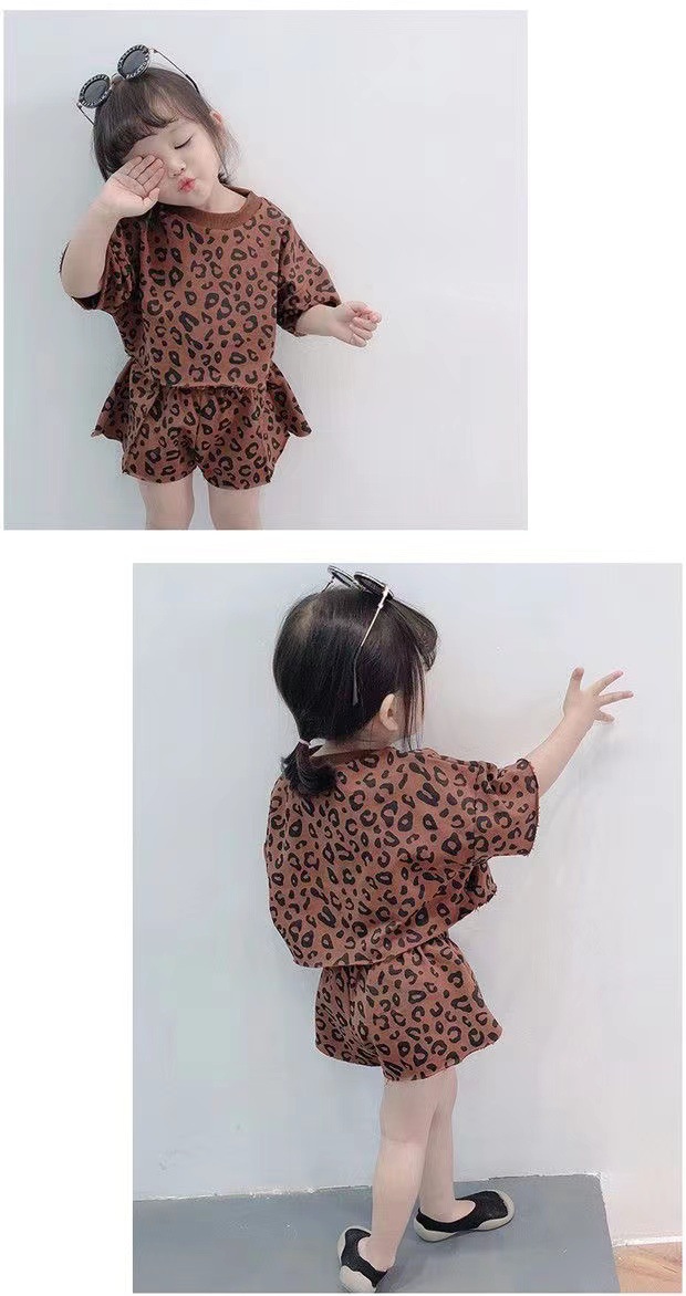 여자 여름 정장 새로운 2025 한국 스타일 얇은 반팔 반바지 아기 패션 레오파드 프린트 티셔츠 투피스 세트 유행스토어 가기