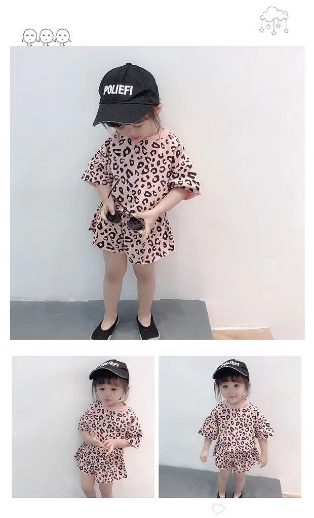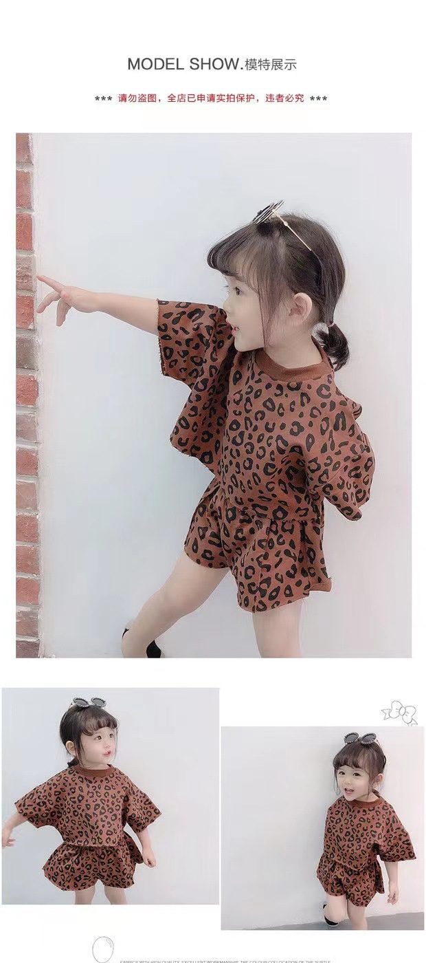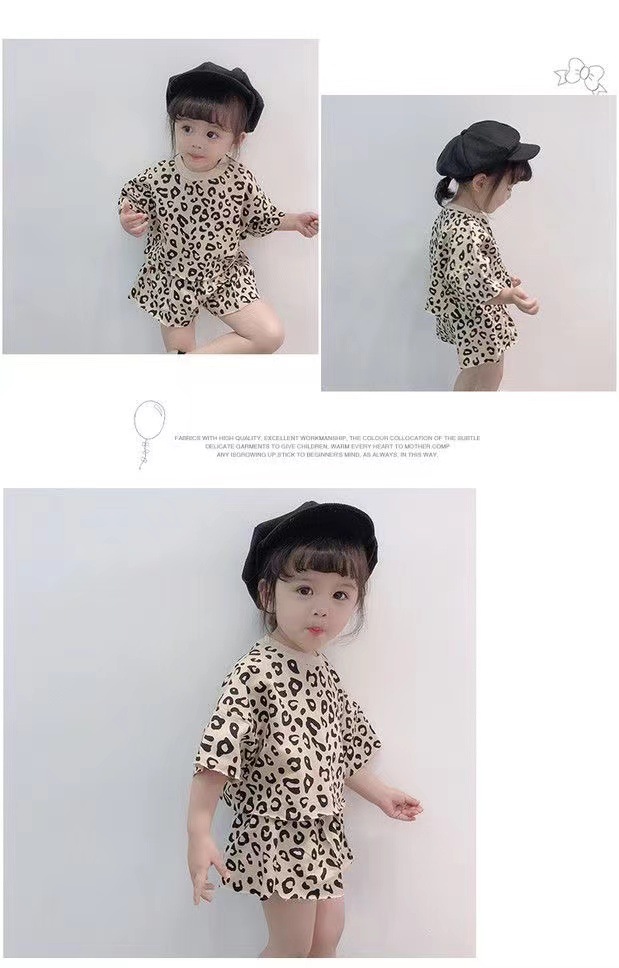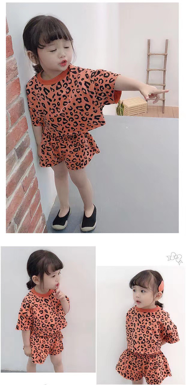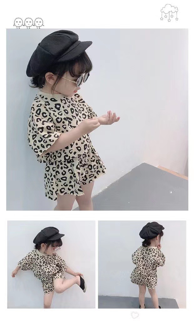 여자 여름 정장 새로운 2025 한국 스타일 얇은 반팔 반바지 아기 패션 레오파드 프린트 티셔츠 투피스 세트 유행스토어 가기
