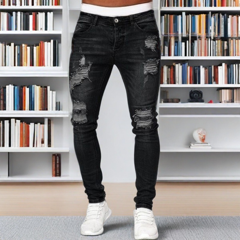 아마존 위시 남성 힙합 스타일 타이트핏 찢어진 슬림핏 청바지 스트리트 패션 브랜드 고퀄리티 데님 트렌드