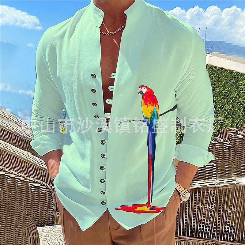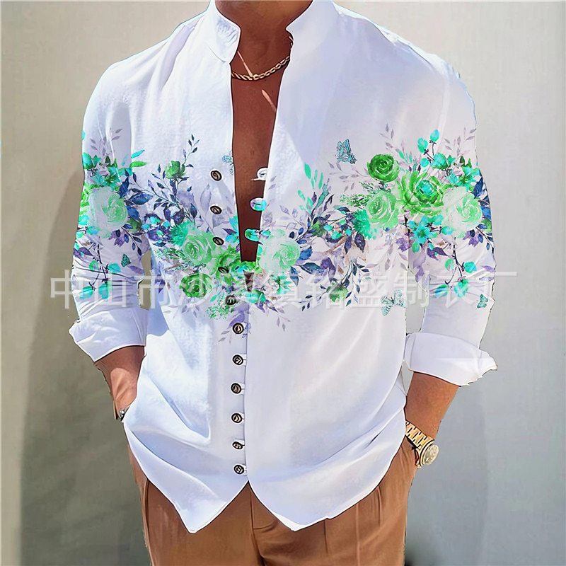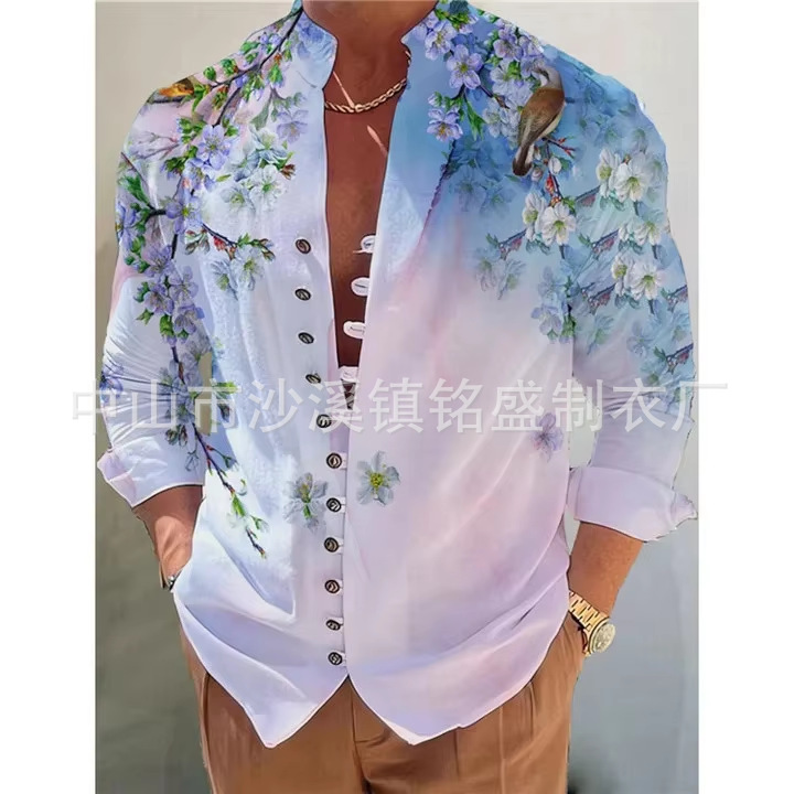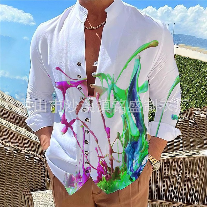 봄과 가을 신상 3D 디지털 프린팅 셔츠 맞춤형 유럽 및 미국 크로스보더 캐주얼 패션 남성용 긴팔 풀프린트 가디건스토어 가기
