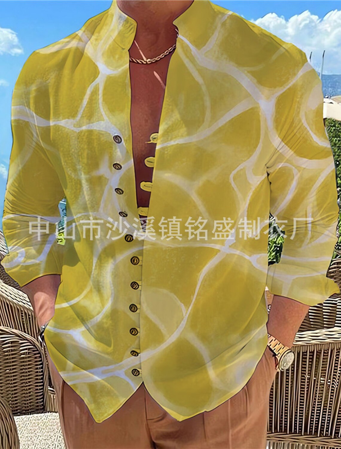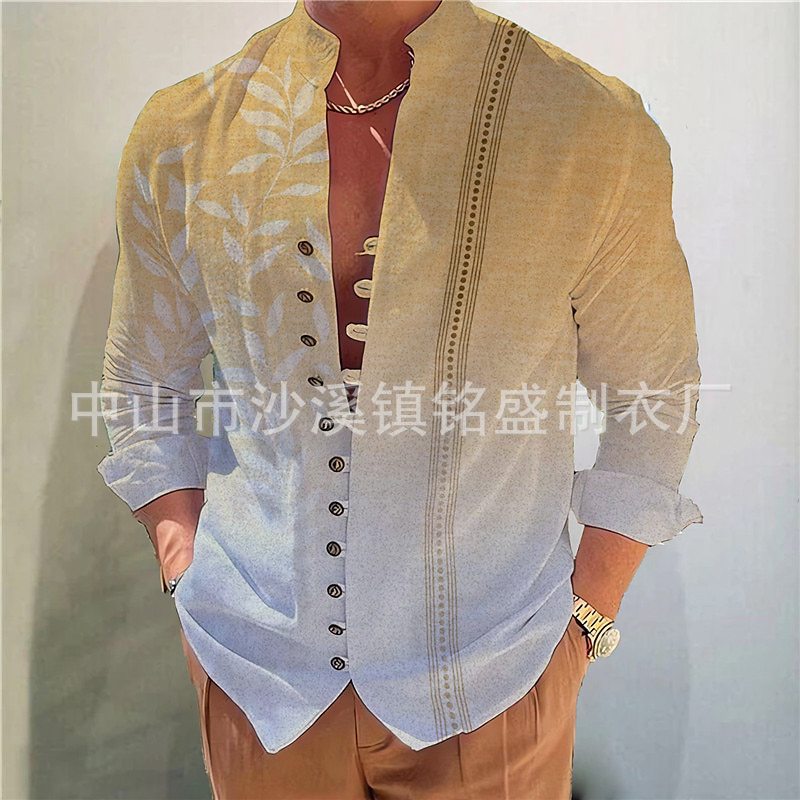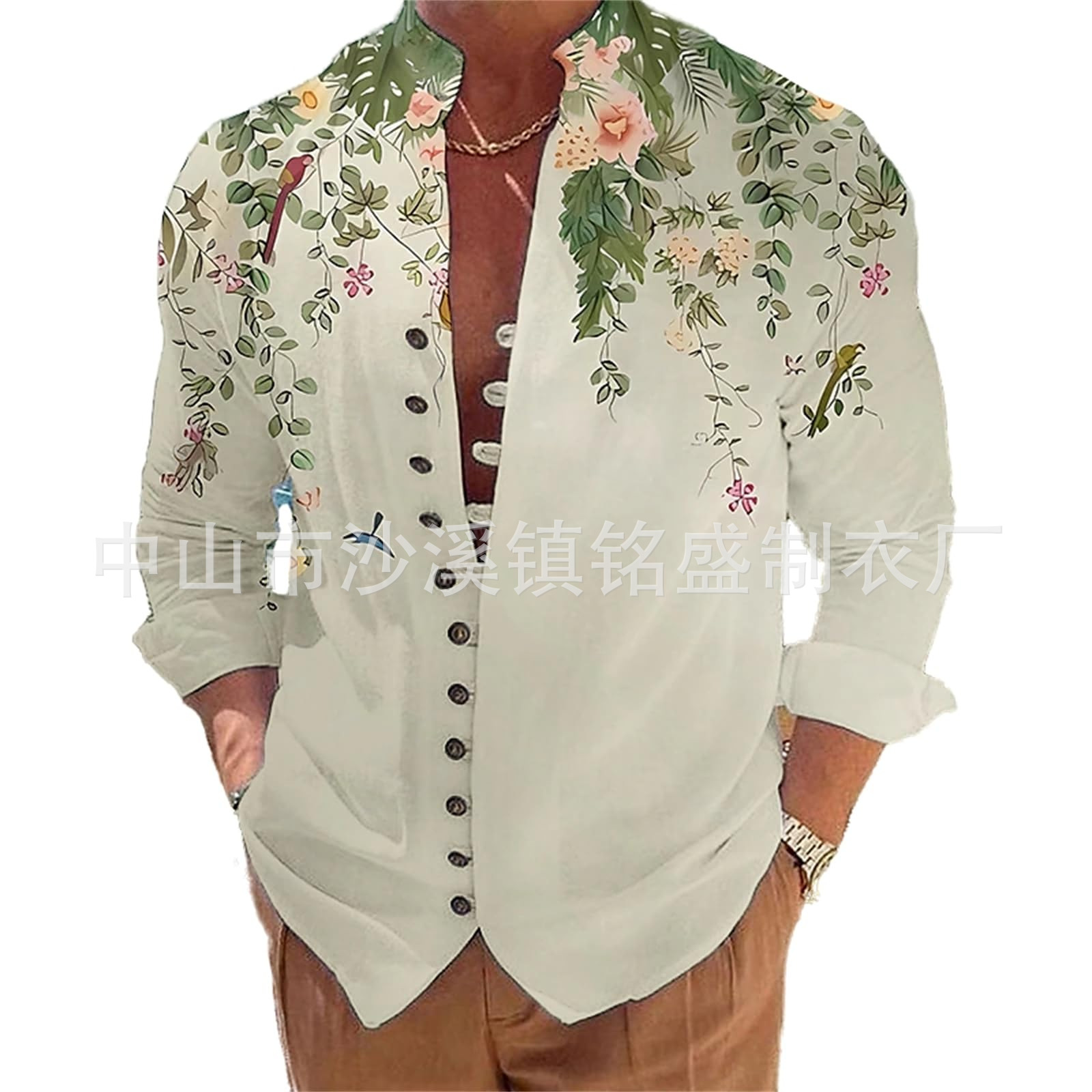 봄과 가을 신상 3D 디지털 프린팅 셔츠 맞춤형 유럽 및 미국 크로스보더 캐주얼 패션 남성용 긴팔 풀프린트 가디건