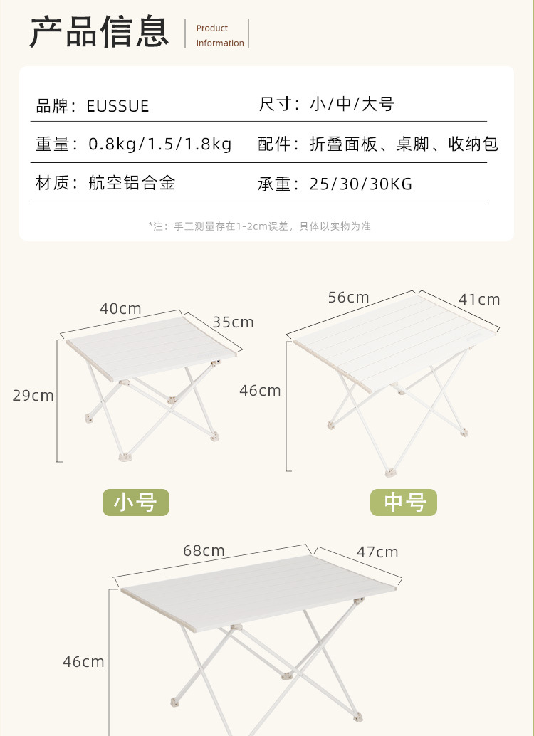 휴대용 야외 접이식 테이블 캠핑 피크닉 테이블 초경량 알루미늄 합금 계란 롤 테이블 캠핑 접이식 테이블 도매스토어 가기