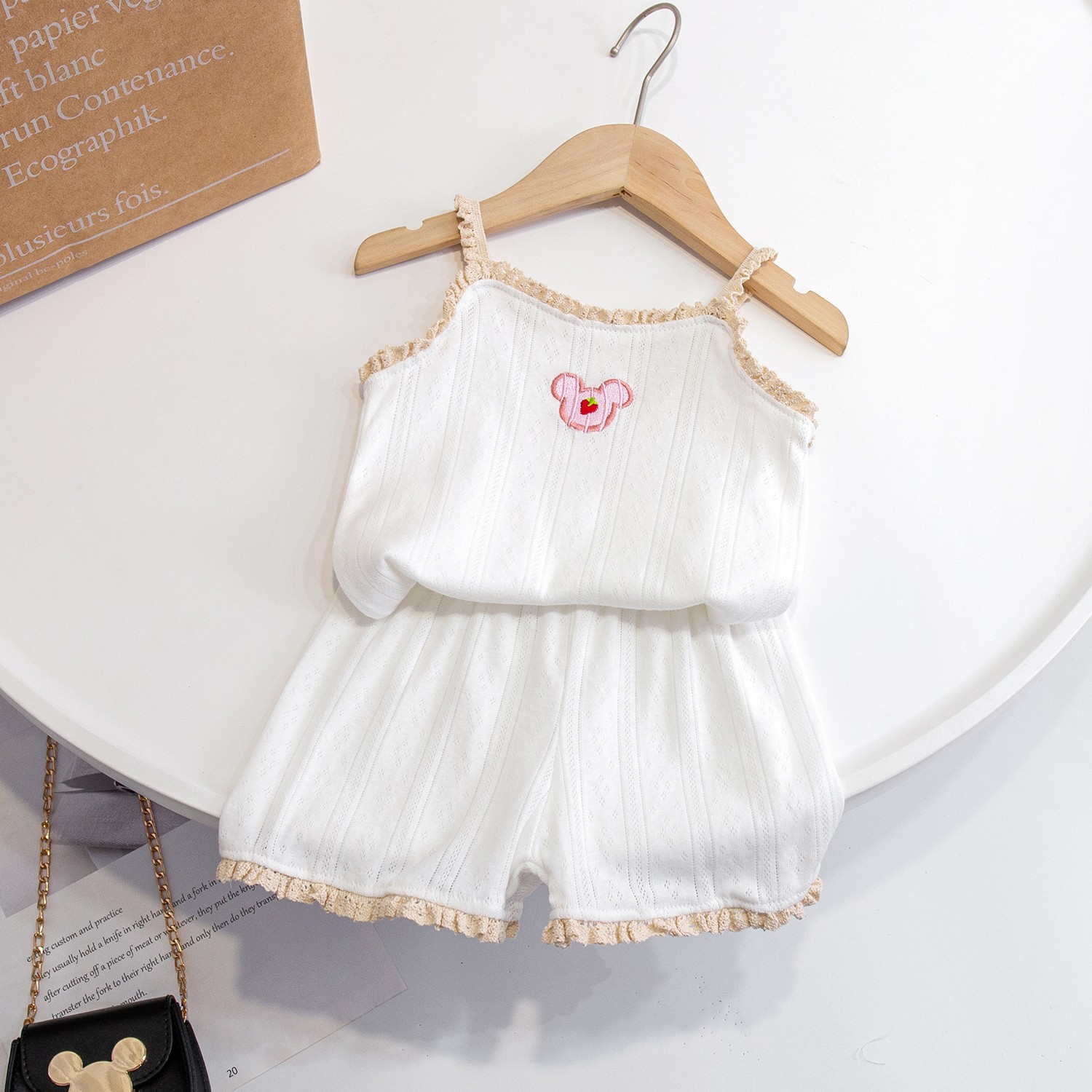 여아 한국 아동복 2023 새로운 인형 칼라 탑 반바지 투피스 웨스턴 스타일 어린이 여름 캐주얼 세트