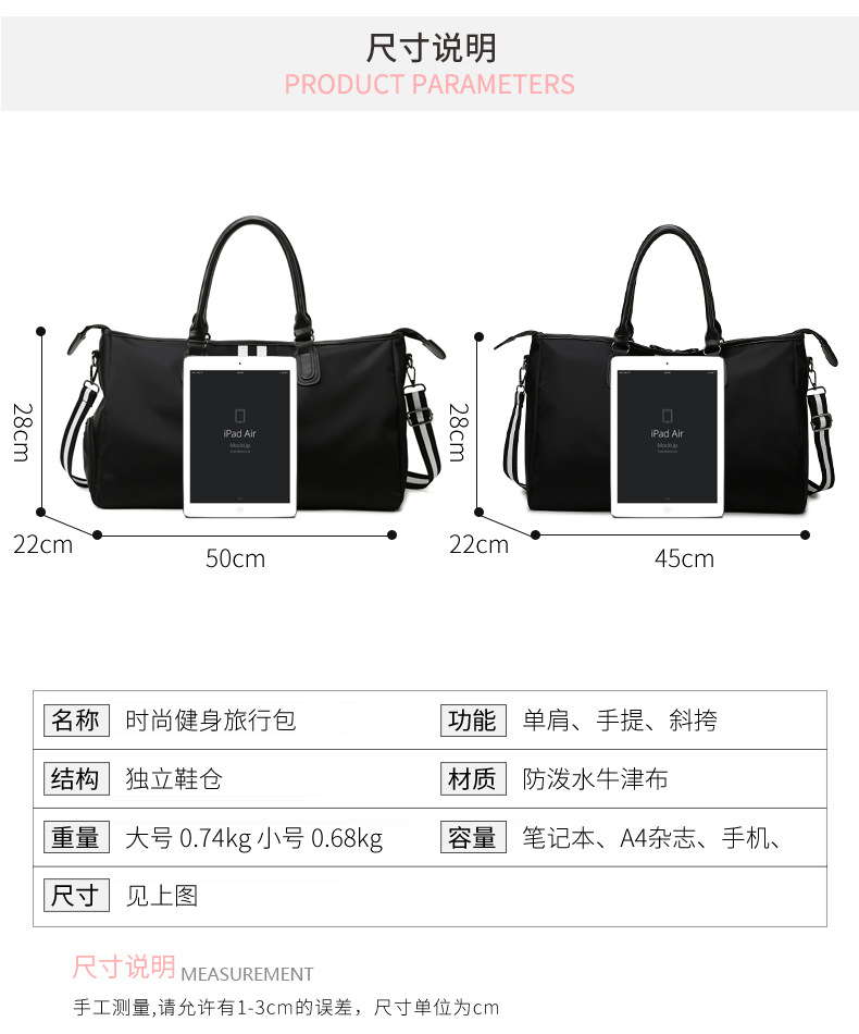 맞춤형 대용량 여행 가방 남성용 단거리 수하물 가방 여성용 싱글 숄더 크로스 바디 핸드백 남성용 독립 신발통 스포츠 가방