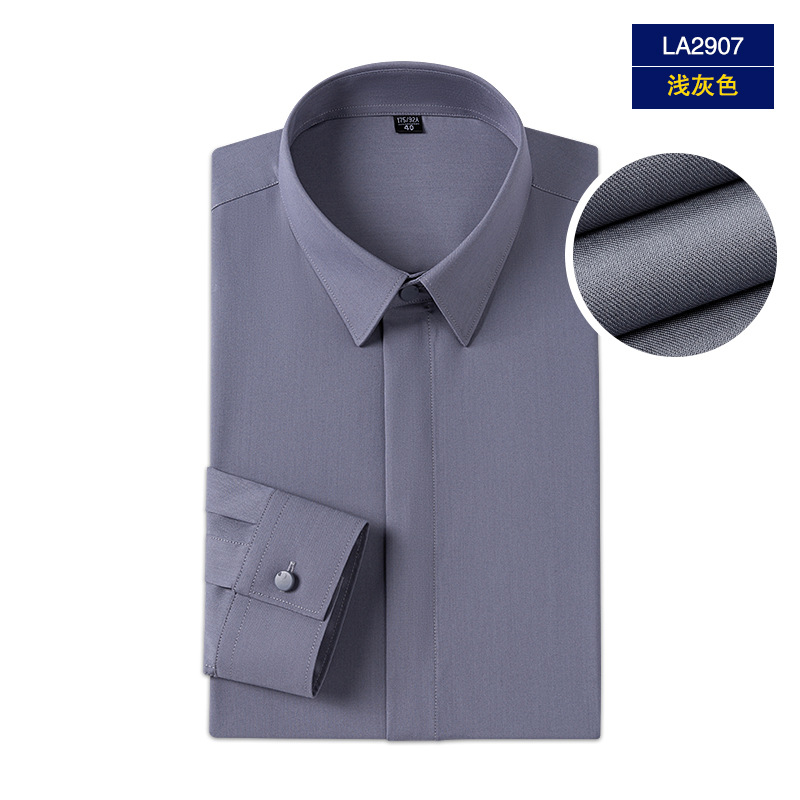 Yisang 남성복 남성용 비즈니스 전문 작업복 비 철 남성용 셔츠를위한 어두운 플래켓이있는 대나무 섬유 긴팔 셔츠