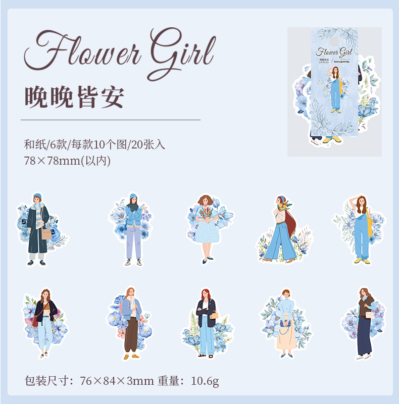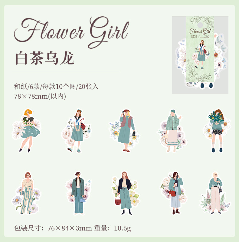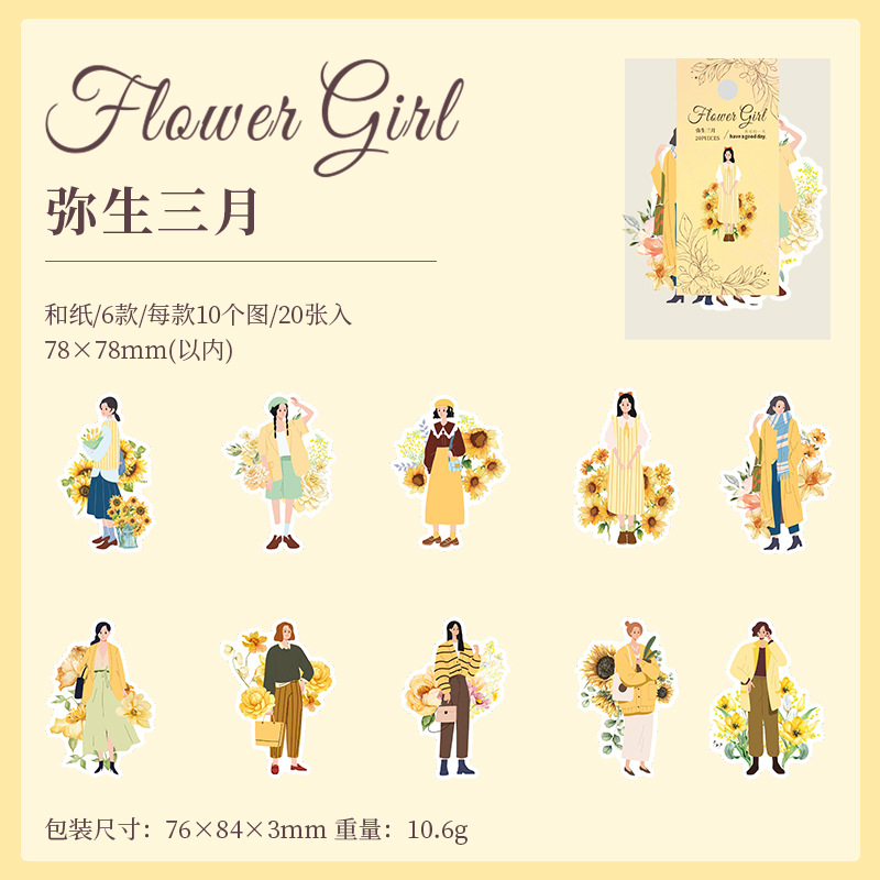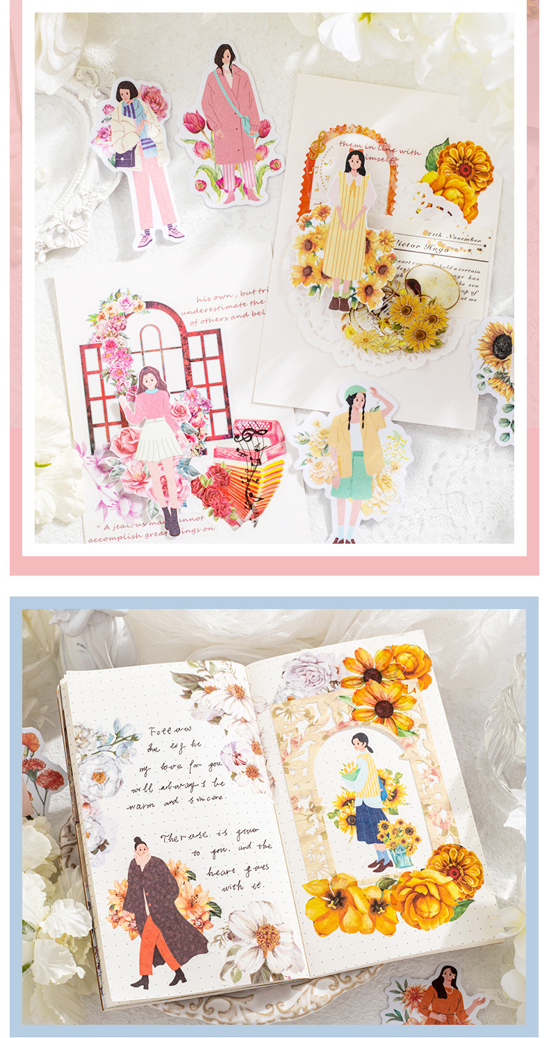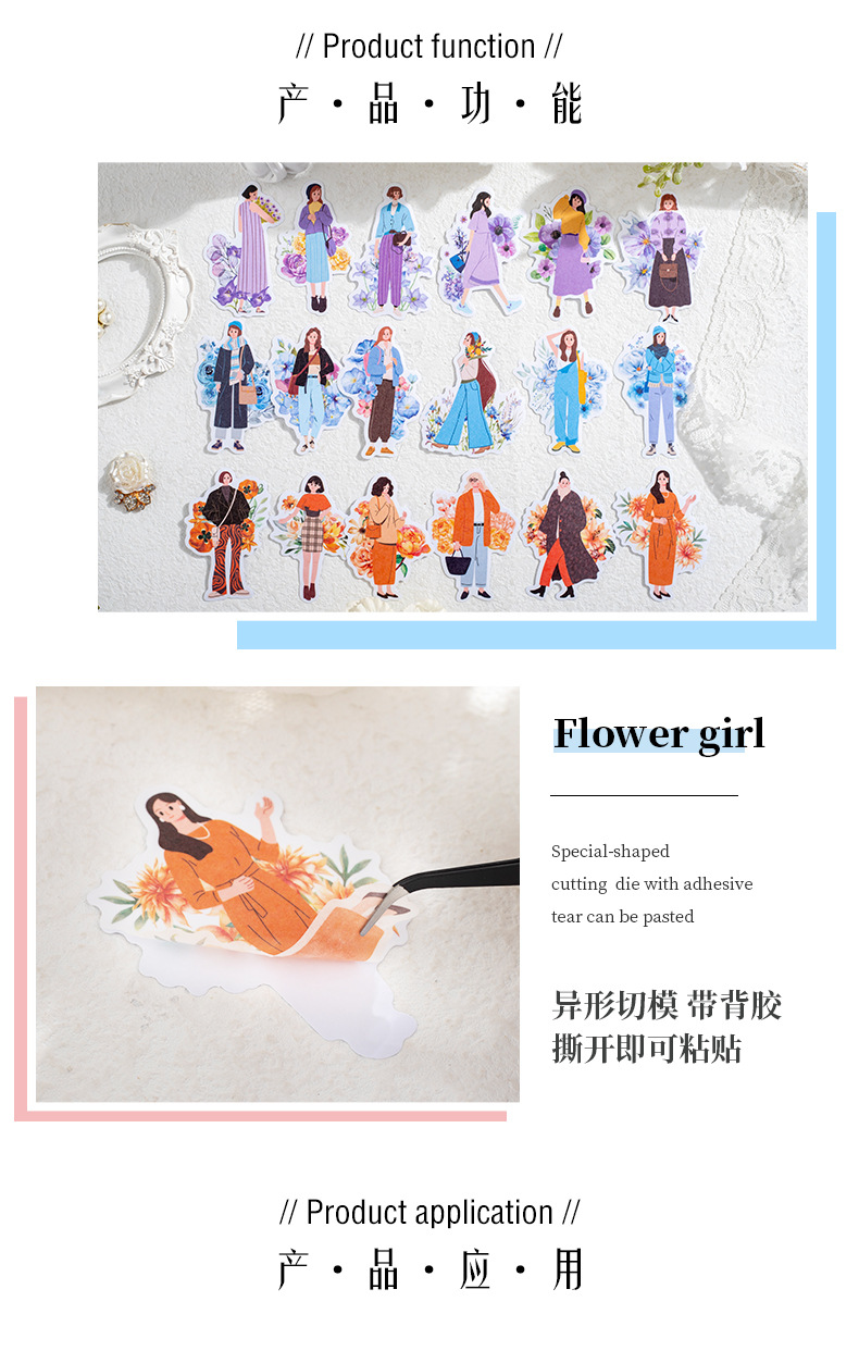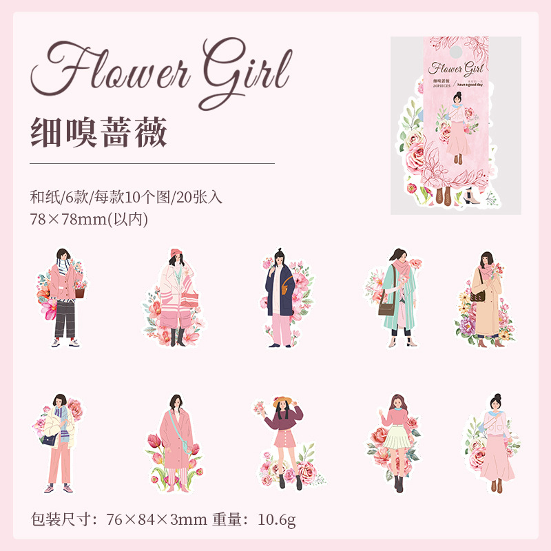아름다운 날 소녀 꽃 시리즈 귀여운 꽃과 소녀 캐릭터 손 계정 재료 및 종이 스티커 6스토어 가기