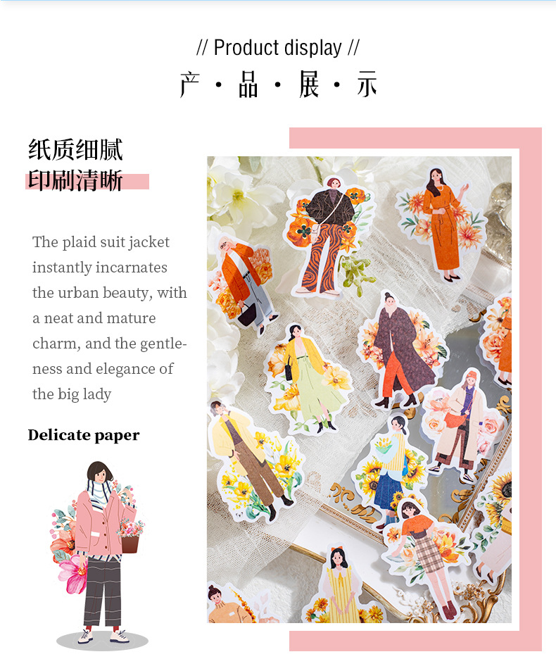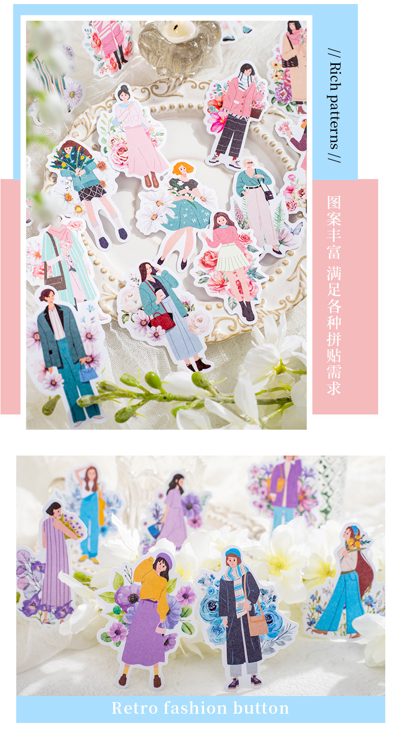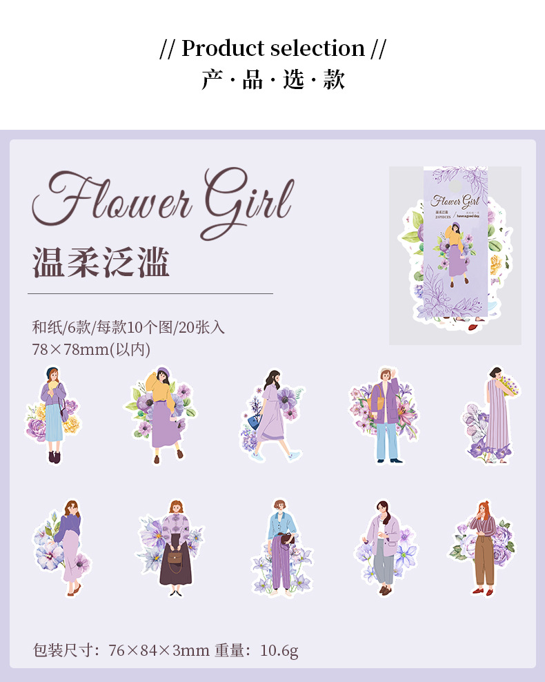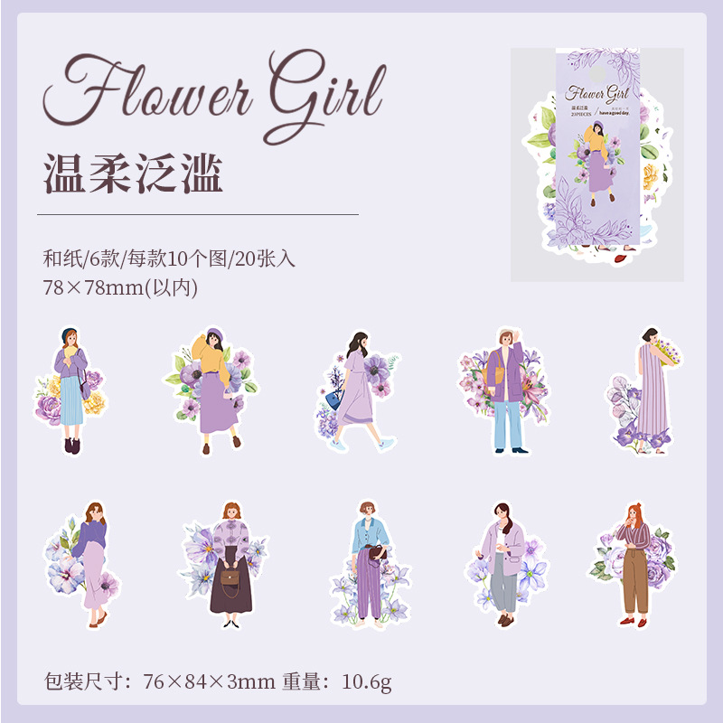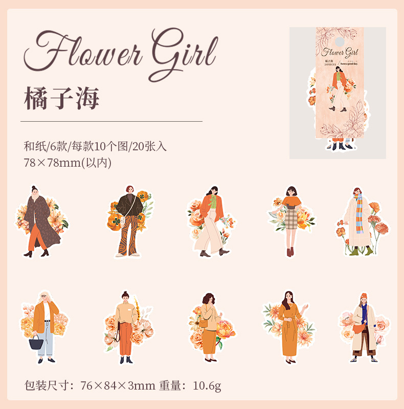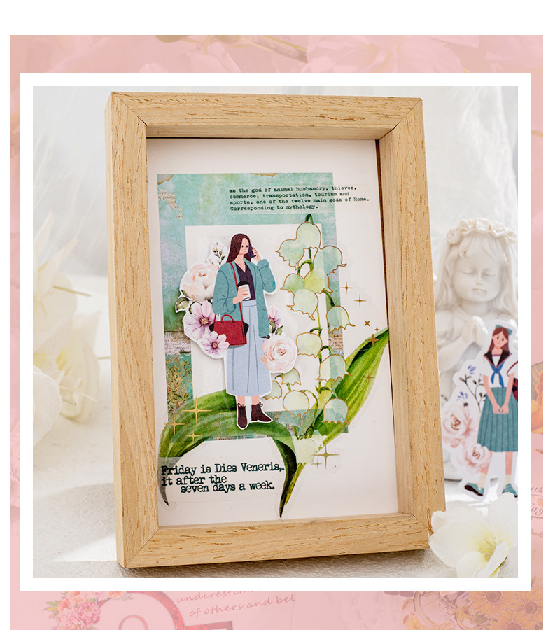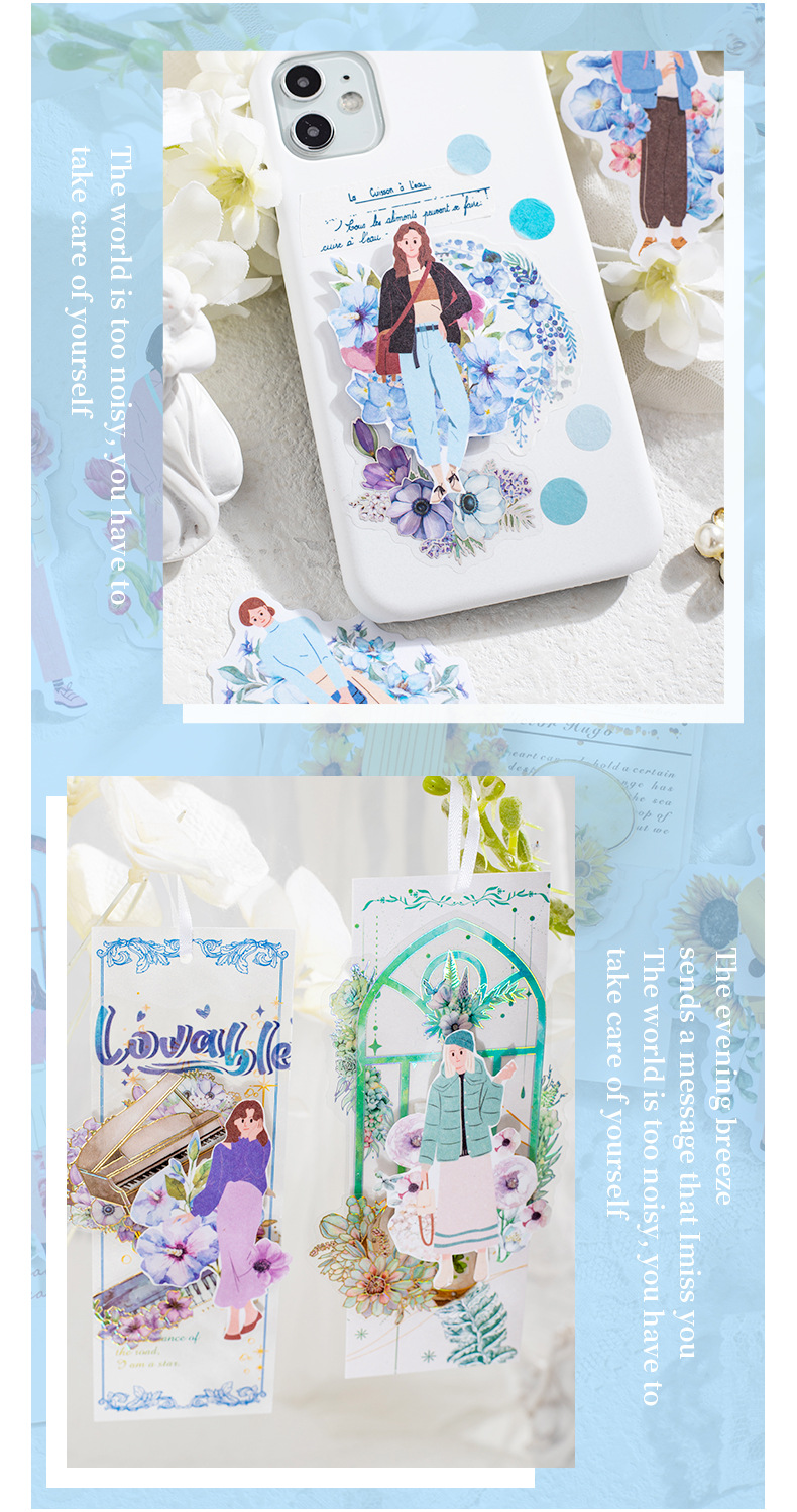 아름다운 날 소녀 꽃 시리즈 귀여운 꽃과 소녀 캐릭터 손 계정 재료 및 종이 스티커 6스토어 가기
