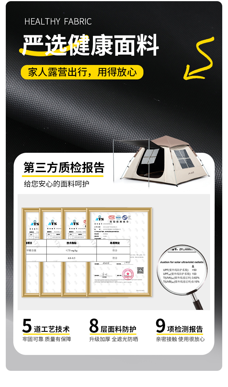 텐트 야외 휴대용 접이식 자동 공원 캠핑 야외 캠핑 장비 방수 두꺼운 검은 고무 자외선 차단제