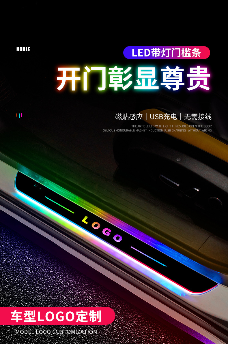 자동차 문턱 램프 매직 컬러 스트리머 환영 페달 분위기 램프 배선 프리 개조 자기 유도 다채로운 호흡 램프스토어 가기