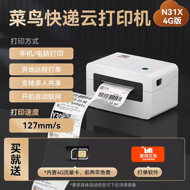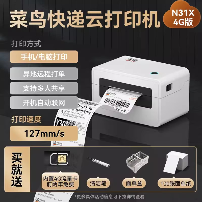 • N31X Cainiao 클라우드 프린터 4G 버전 [휴대폰/컴퓨터 + 원격 주문] 독립형 표준