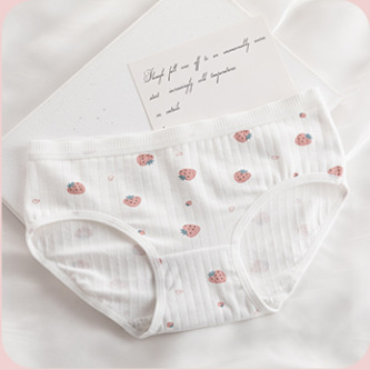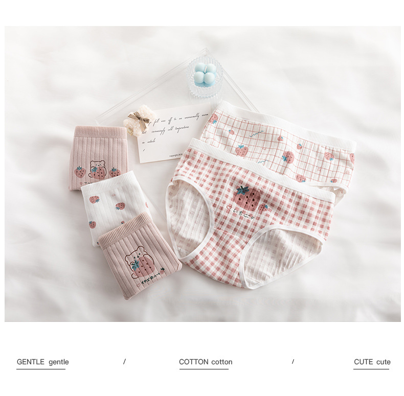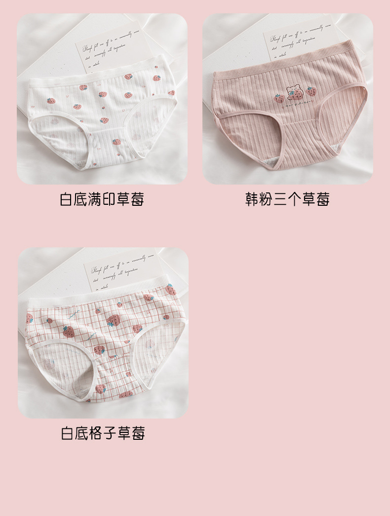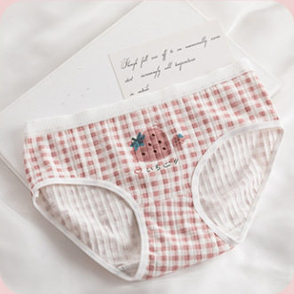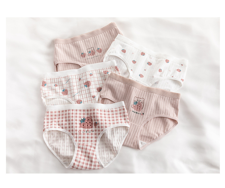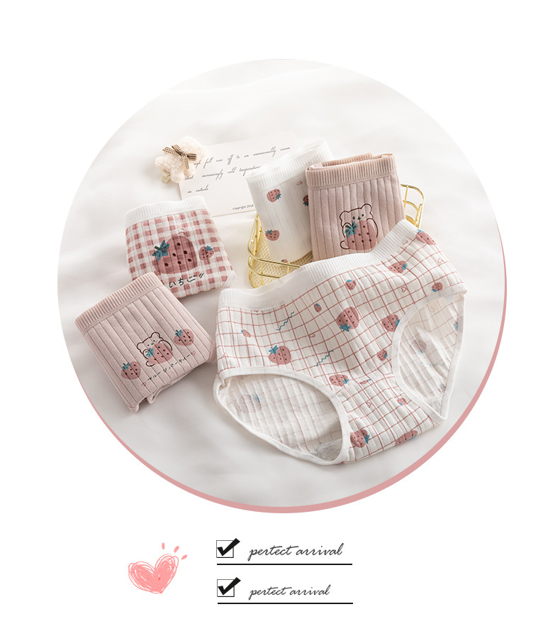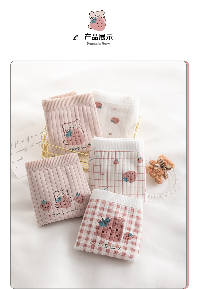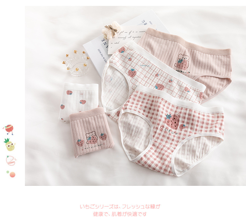 폭발적인 귀여운 딸기 격자 무늬 숙녀 중간 허리 일본 소녀 삼각형 반바지 도매 소녀 면 속옷 여성스토어 가기