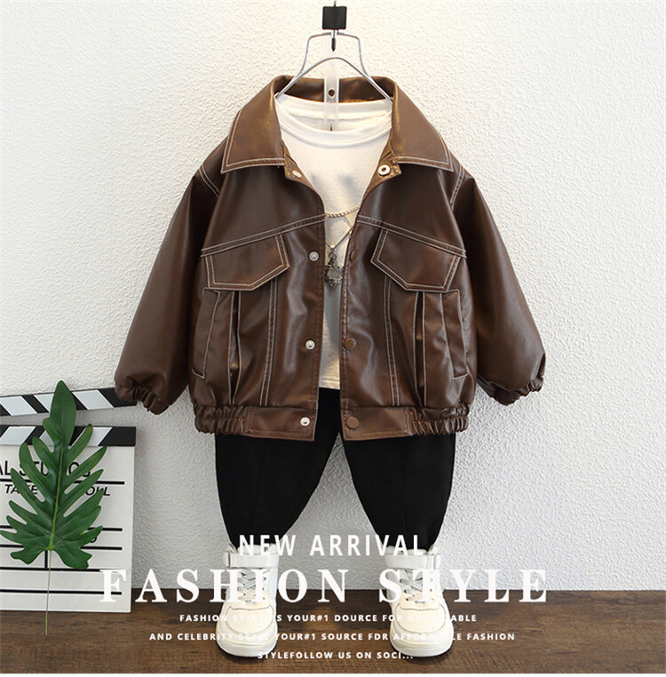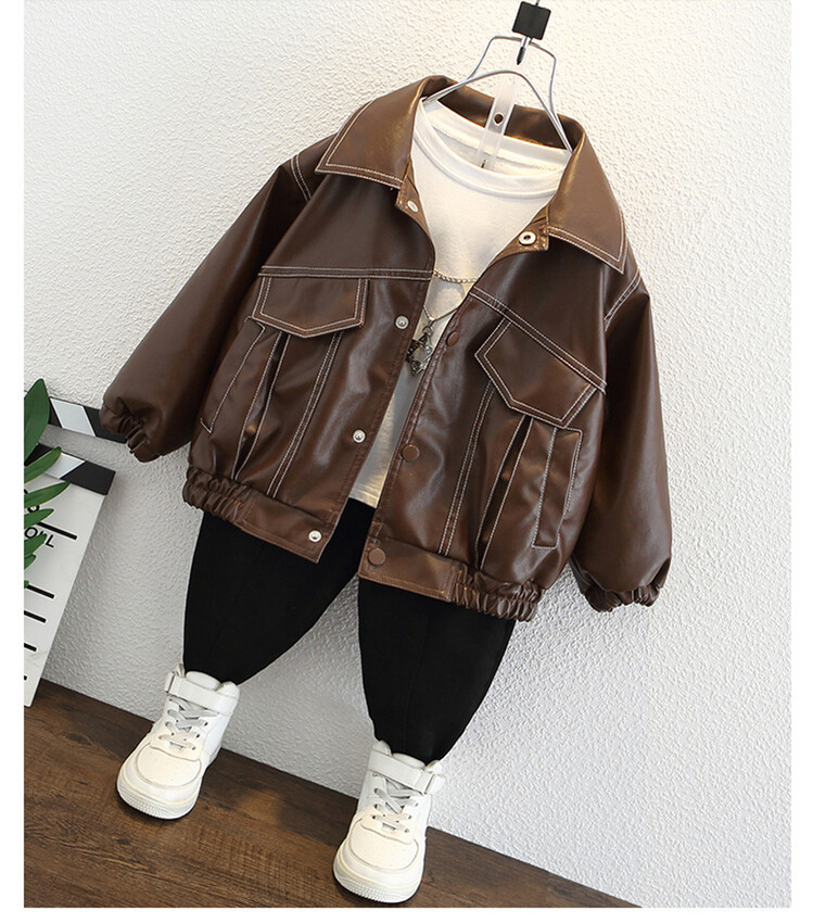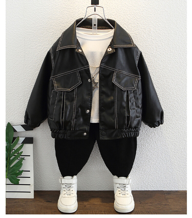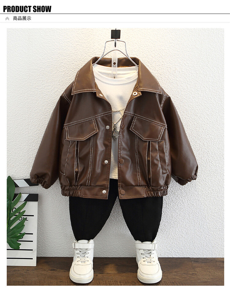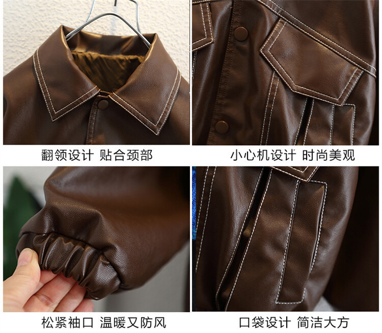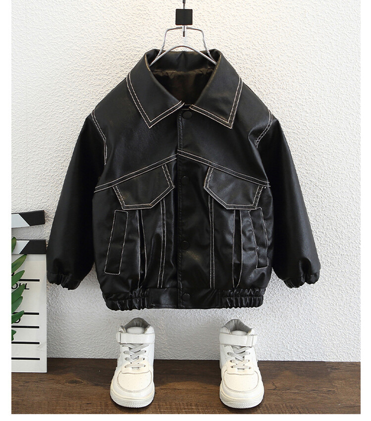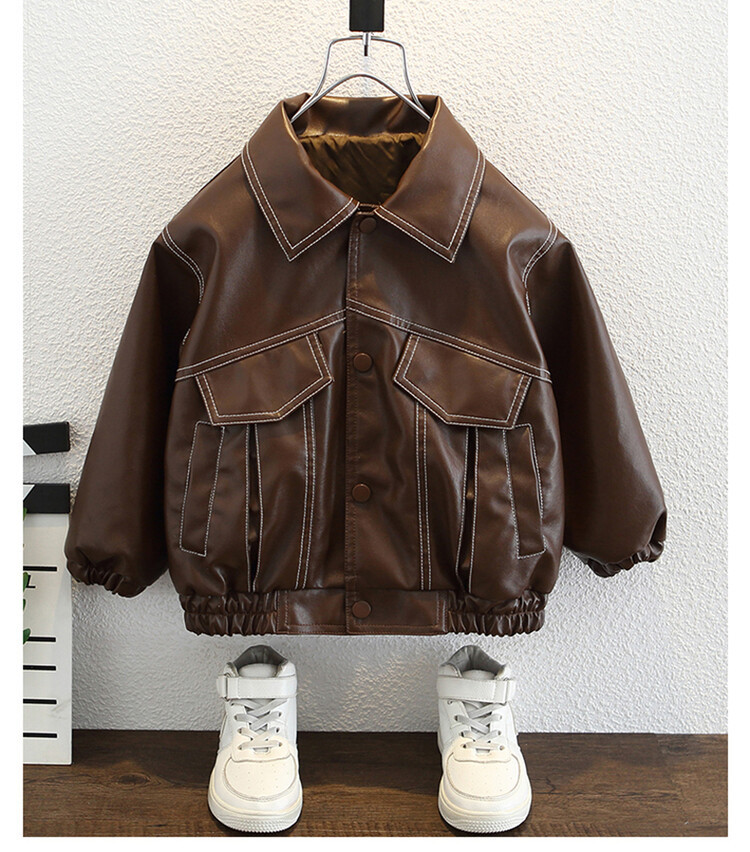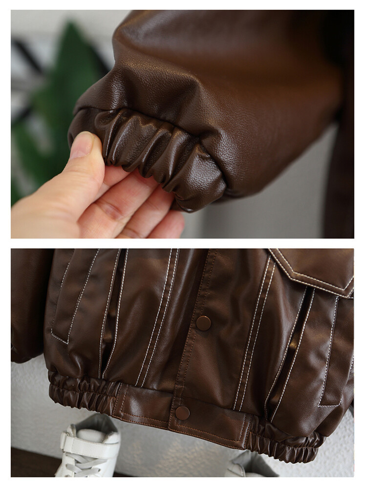 아동복 남아용 플리스 가죽 재킷 2025 신상 아기 겨울옷 어린이 두꺼운 보온 가죽 재킷