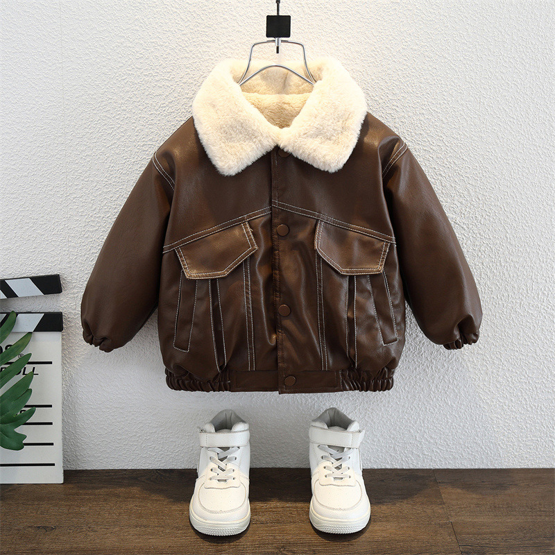 아동복 남아용 플리스 가죽 재킷 2025 신상 아기 겨울옷 어린이 두꺼운 보온 가죽 재킷스토어 가기