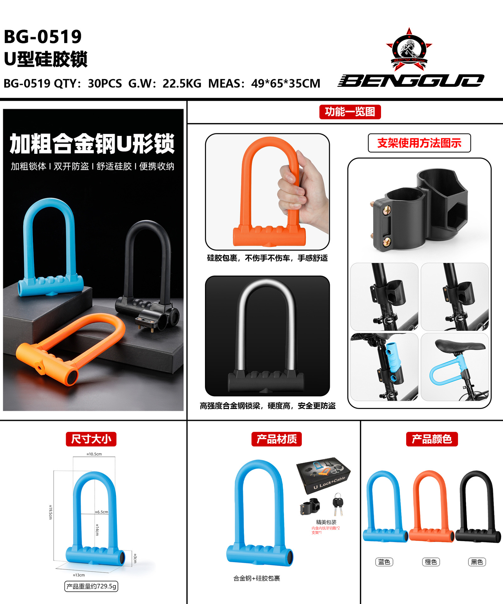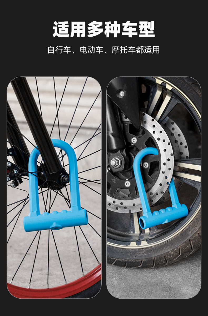 자전거 U 자형 실리콘 잠금 전기 자동차 더블 오픈 대담한 하드 전단 방지 오토바이 도난 방지 잠금 점프 과일 도매스토어 가기