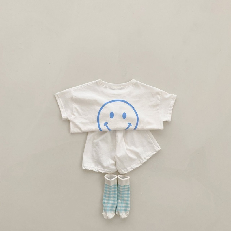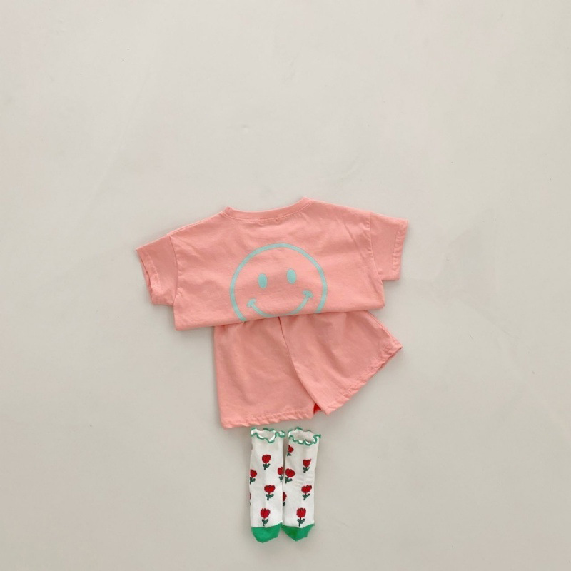 한국식 in 어린이 캔디 컬러 면 캐주얼 반팔 세트 편지 스마일 티셔츠 반바지 투피스 세트