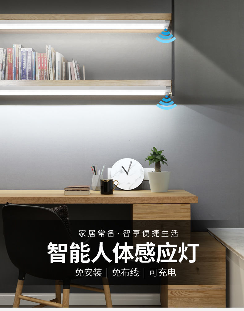 Led 지능형 인체 유도 마그네틱 스트립 무선 야간 조명 충전식 옷장 캐비닛 와인 캐비닛 침실스토어 가기