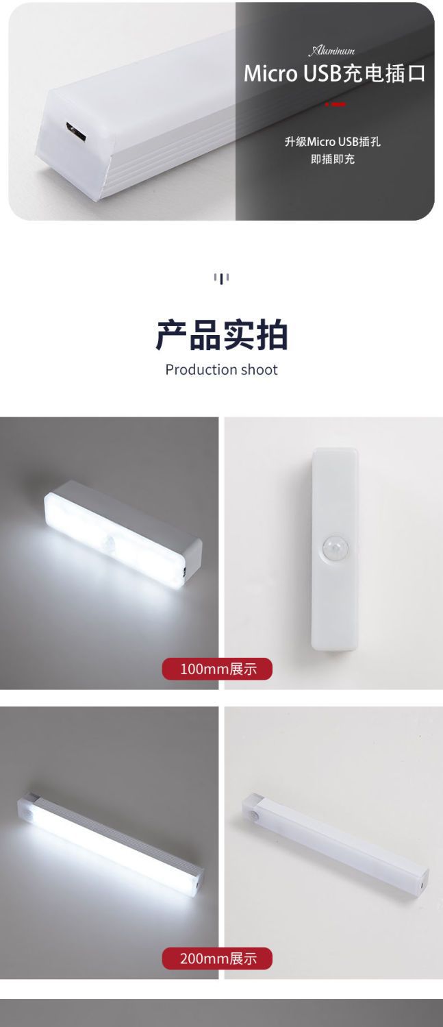 Led 지능형 인체 유도 마그네틱 스트립 무선 야간 조명 충전식 옷장 캐비닛 와인 캐비닛 침실