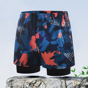 국경 간 폭발 스포츠 더블 레이어 수영 트렁크 느슨한 플러스 사이즈 복서 안티 당혹감 달리기 피트니스 남성 수영 트렁크 사용자 정의스토어 가기
