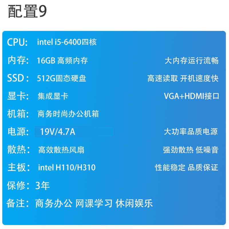 • 9:H110 마더 보드 i5/6400CPU 16G 메모리 512G 솔리드 스테이트
