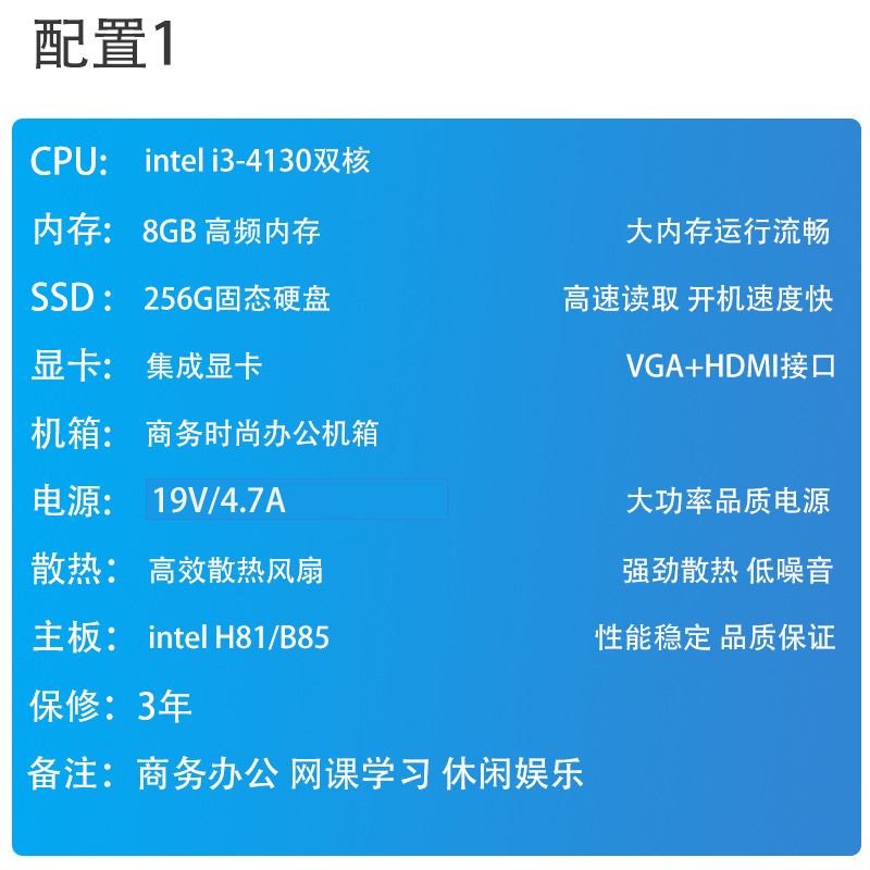 • 1:H81 마더 보드 i3/4130CPU 8G 메모리 256G 솔리드 스테이트