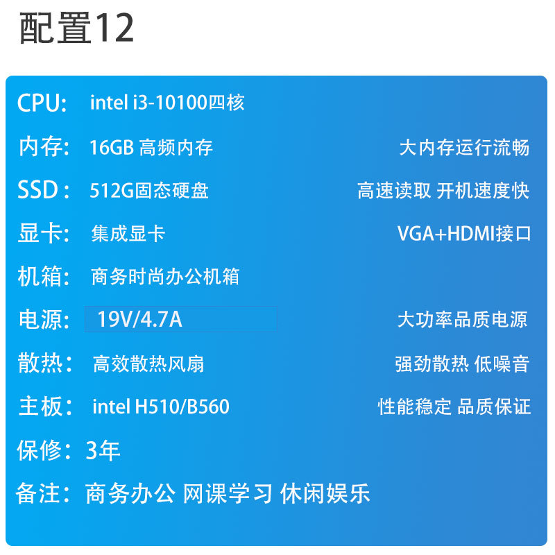 • 12:H510 마더 보드 i3/10100CPU 16G 메모리 512G 솔리드 스테이트
