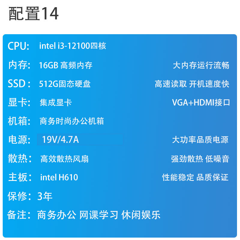 • 14:H610 마더 보드 i3/12100CPU 16G 메모리 512G 솔리드 스테이트