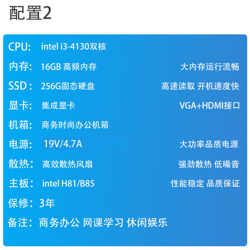 • 2:H81 마더 보드 i3/4130CPU 16G 메모리 256G 솔리드 스테이트