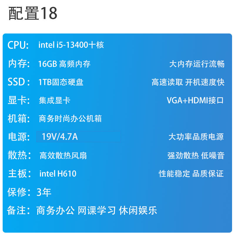 • 18:H610 마더 보드 i5/13400CPU 16G 메모리 1T 솔리드 스테이트