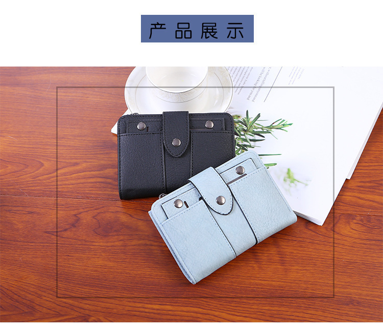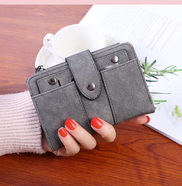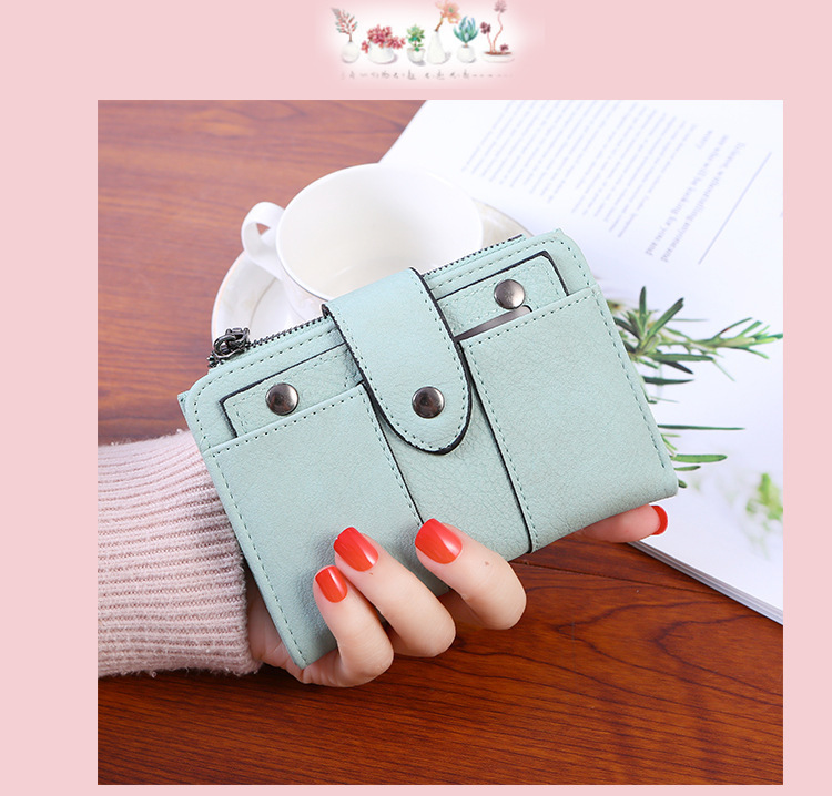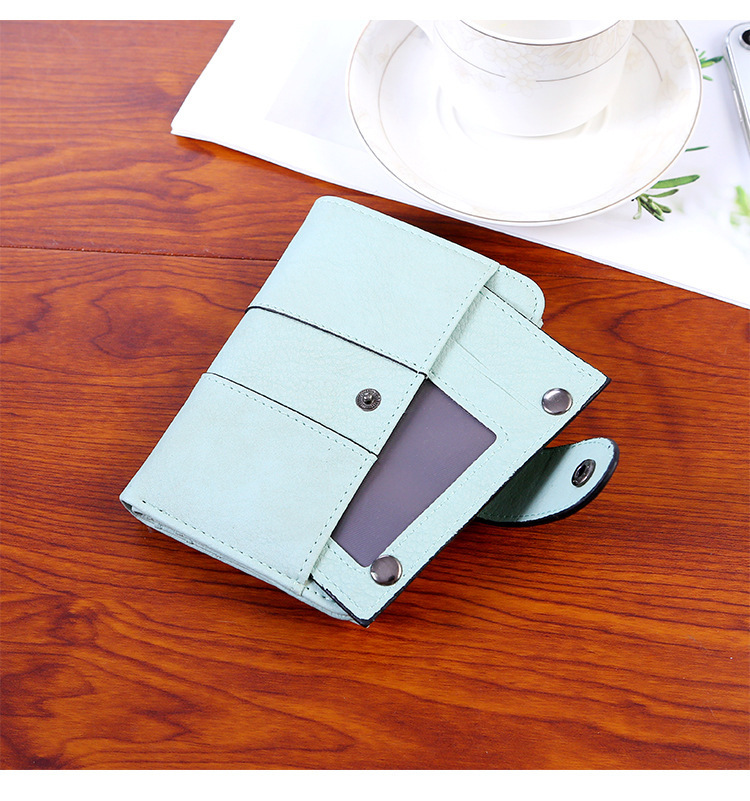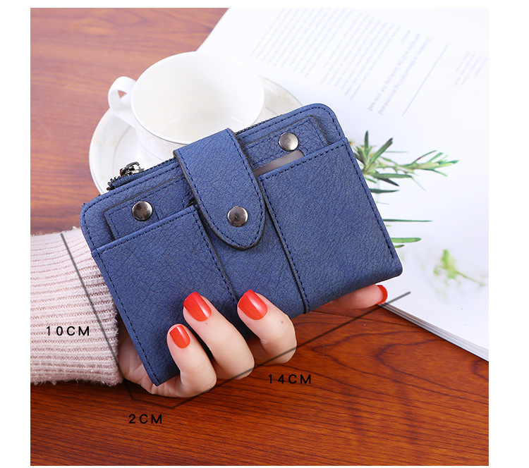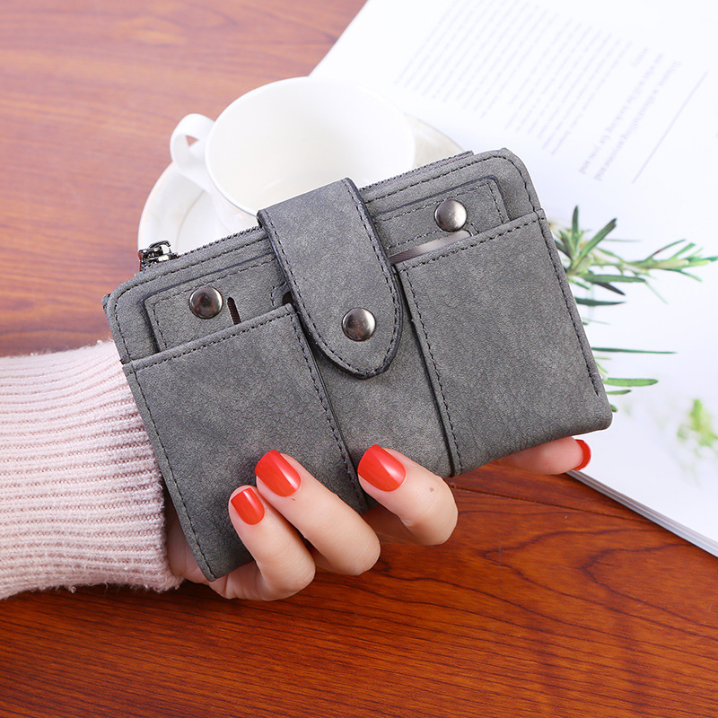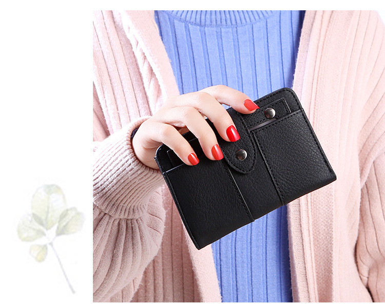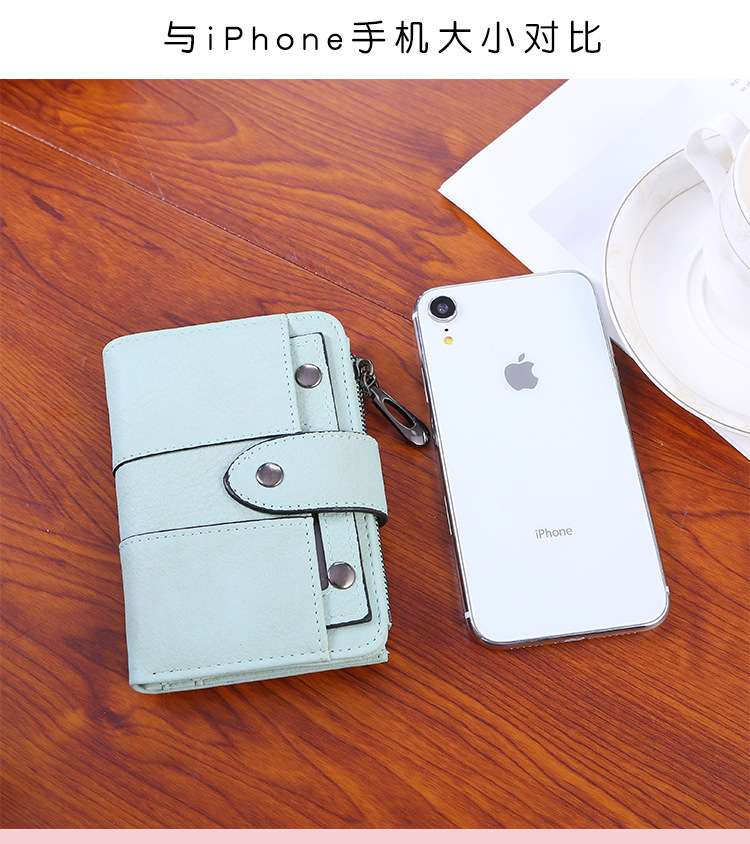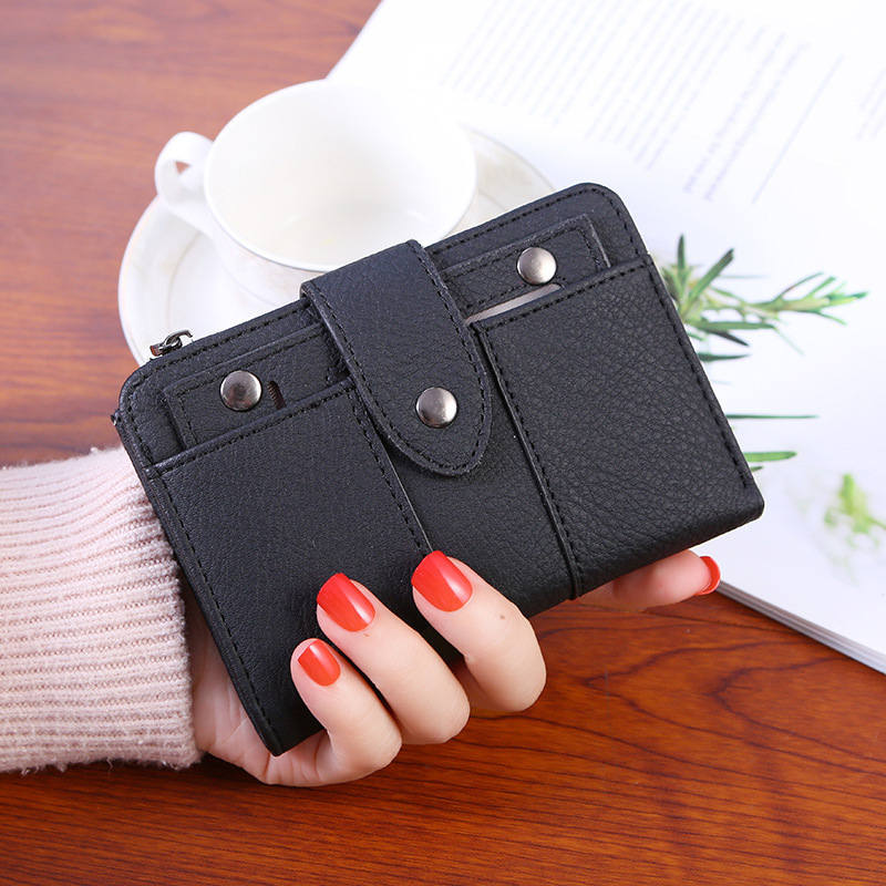 크로스 보더 지갑 여성용 짧은 일본과 한국 스타일 작은 신선한 PU 지퍼 Liuding 버클 간단한 모든 매치 드로어블 카드 접는 지갑