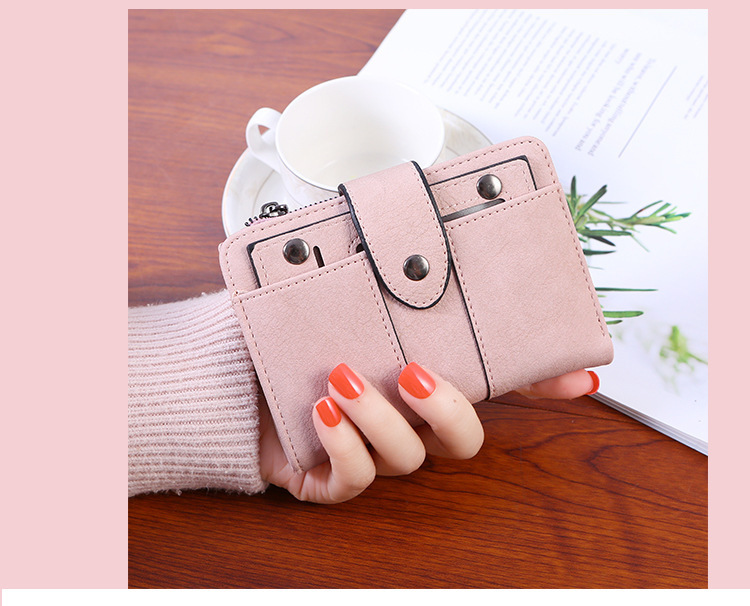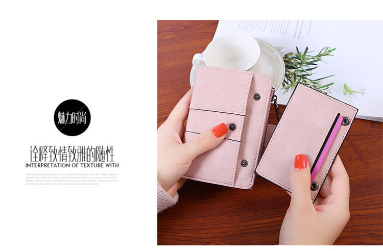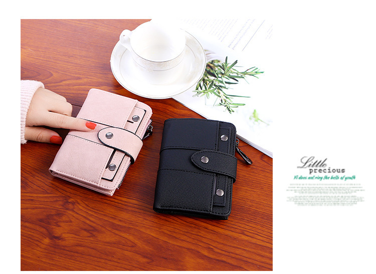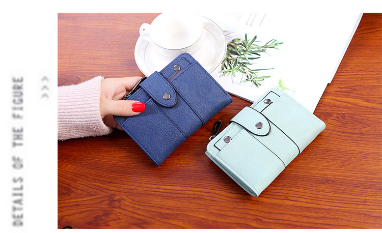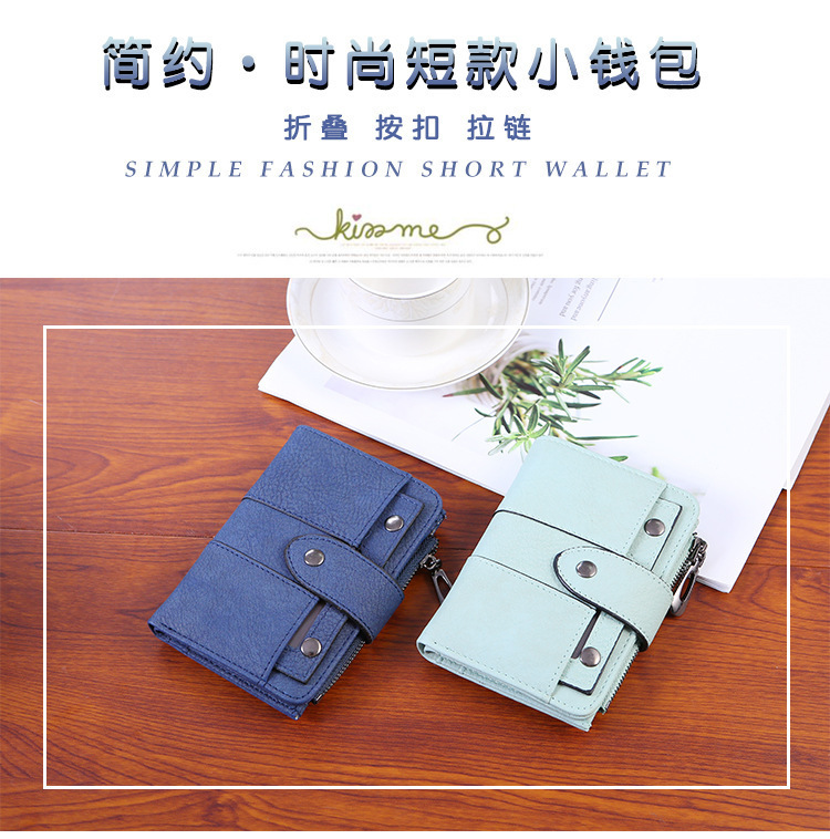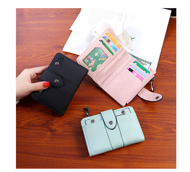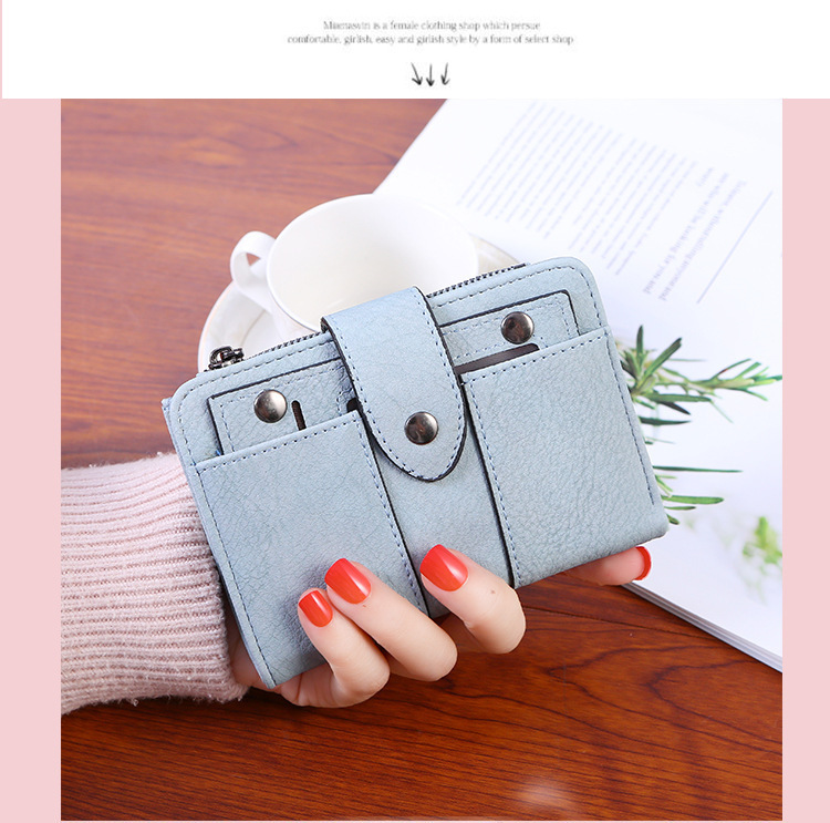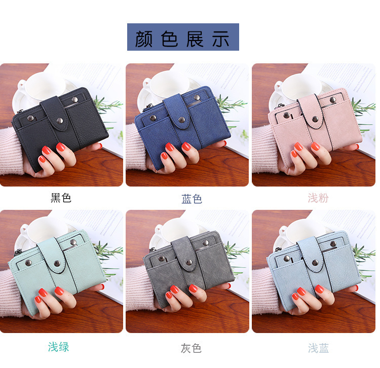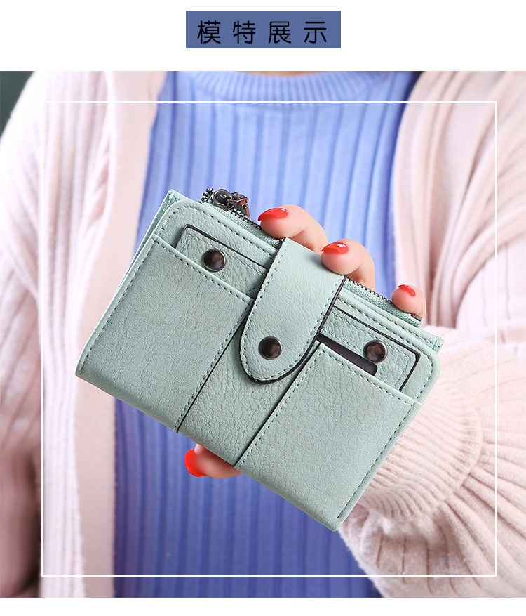 크로스 보더 지갑 여성용 짧은 일본과 한국 스타일 작은 신선한 PU 지퍼 Liuding 버클 간단한 모든 매치 드로어블 카드 접는 지갑스토어 가기
