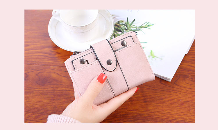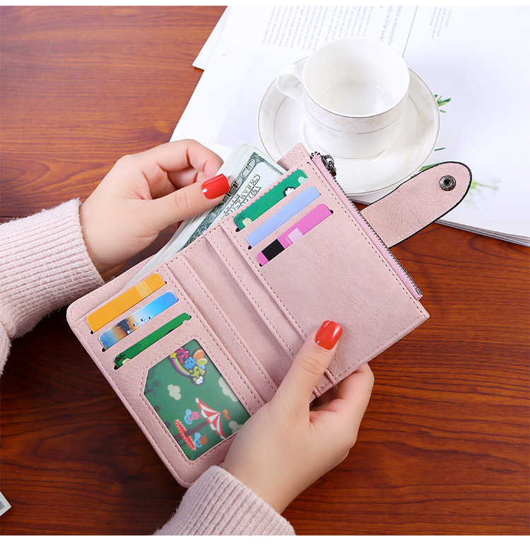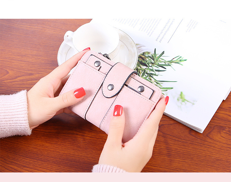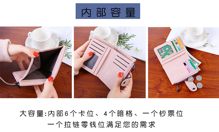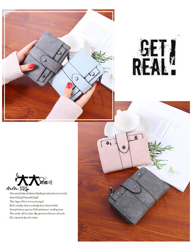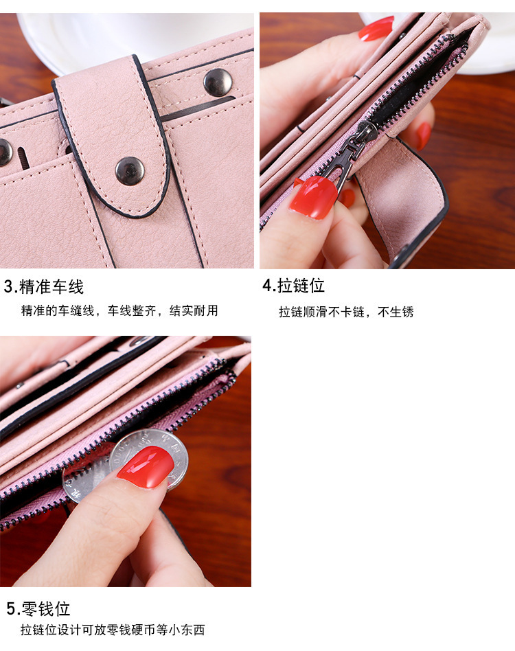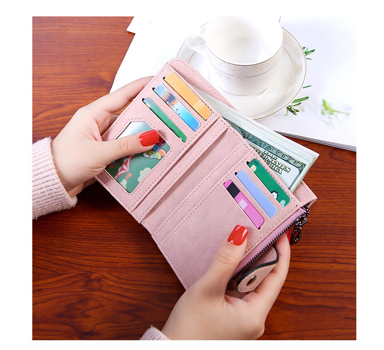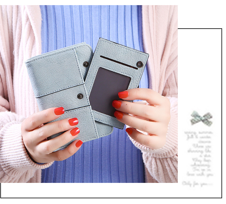 크로스 보더 지갑 여성용 짧은 일본과 한국 스타일 작은 신선한 PU 지퍼 Liuding 버클 간단한 모든 매치 드로어블 카드 접는 지갑스토어 가기