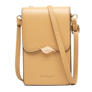 可触屏手机包女2021秋冬新款日韩纯色竖款叶子搭扣简约单肩斜挎包