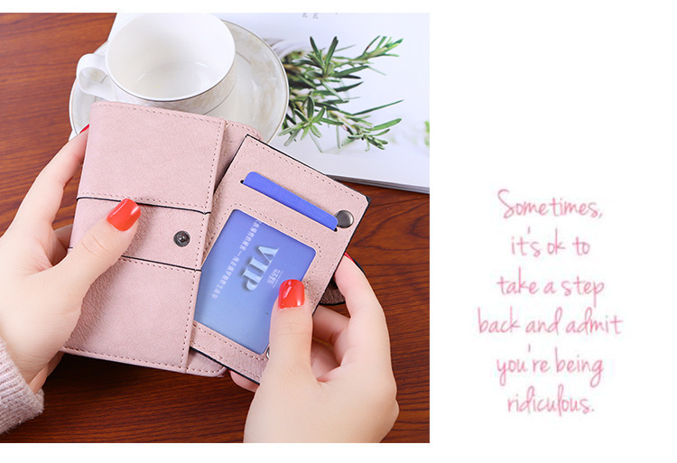 伊人贝贝磨砂钱包女短款小众学生欧美复古可爱三折多卡位女士钱夹
