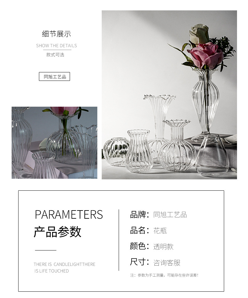 북유럽 투명 유리 꽃병, 창의적인 꽃꽂이, 귀여운 수경 가구, 데스크탑 장식품, 고급 감각스토어 가기
