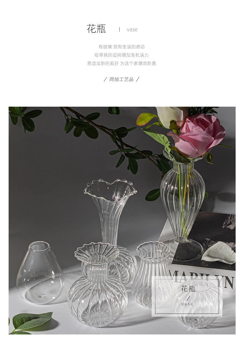 북유럽 투명 유리 꽃병, 창의적인 꽃꽂이, 귀여운 수경 가구, 데스크탑 장식품, 고급 감각