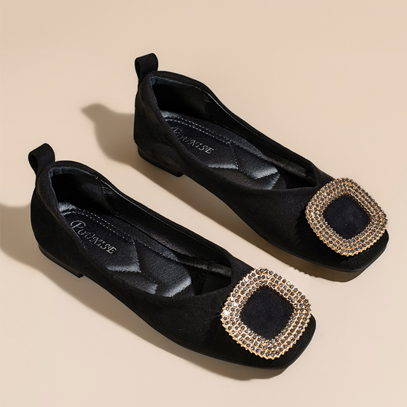 프랑스 여성 신발 2025 새로운 핫 스타일 봄 신발 다목적 라인 석 스퀘어 발가락 플랫 신발 대형 여성 신발 41 ~ 43스토어 가기