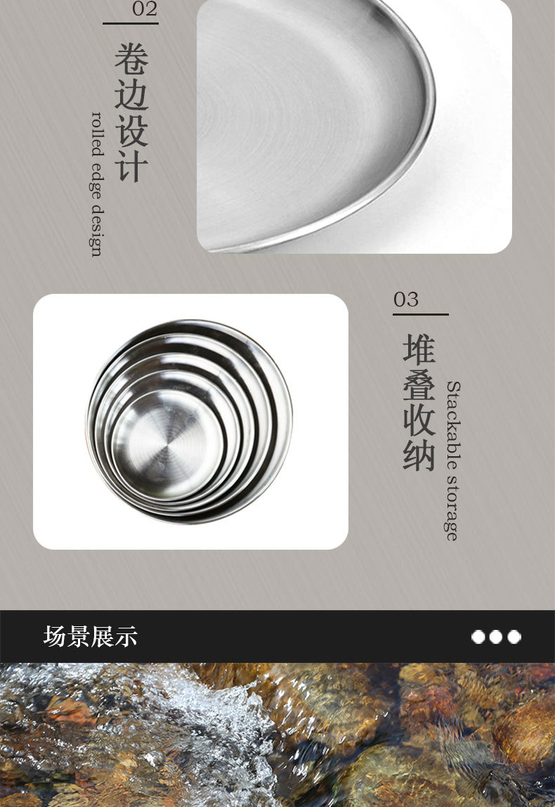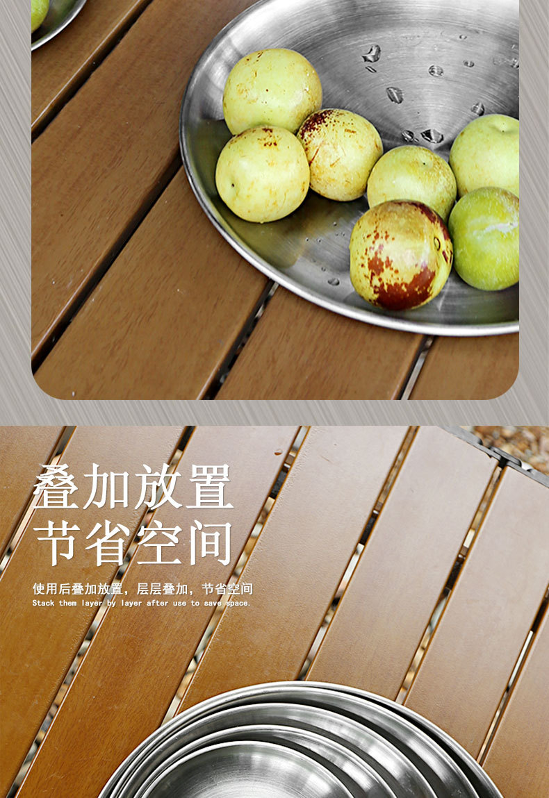 야외 피크닉 스테인리스 식기 캠핑 식기 바베큐 내열 원형 접시 5종 세트 휴대용 조리기구스토어 가기