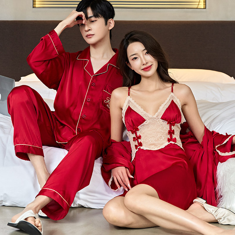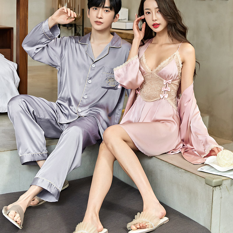 커플 잠옷 여자의 실크 봄과 가을 얇은 섹시한 잠옷 잠옷 2 종 세트 여름 남자의 아이스 실크 세트스토어 가기