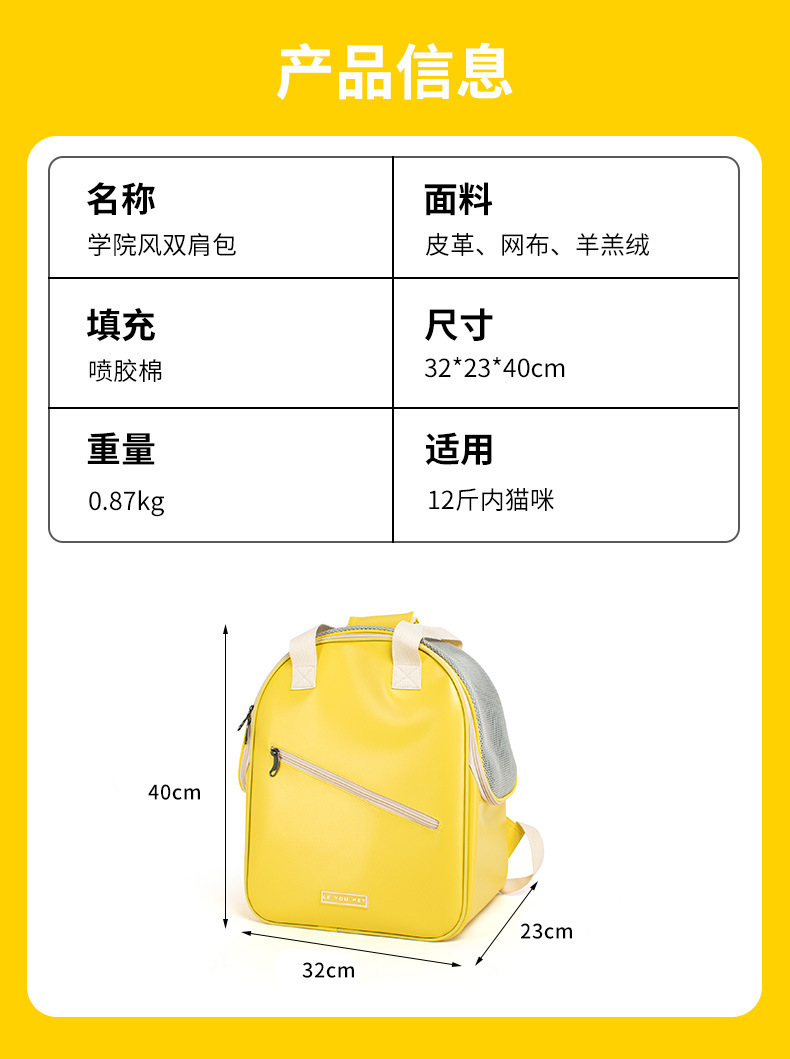 대용량 단순 방수 라이트 럭셔리 애완 동물 배낭 휴대용 가방 경량 통기성 넓은 공간 배낭 애완 동물 가방