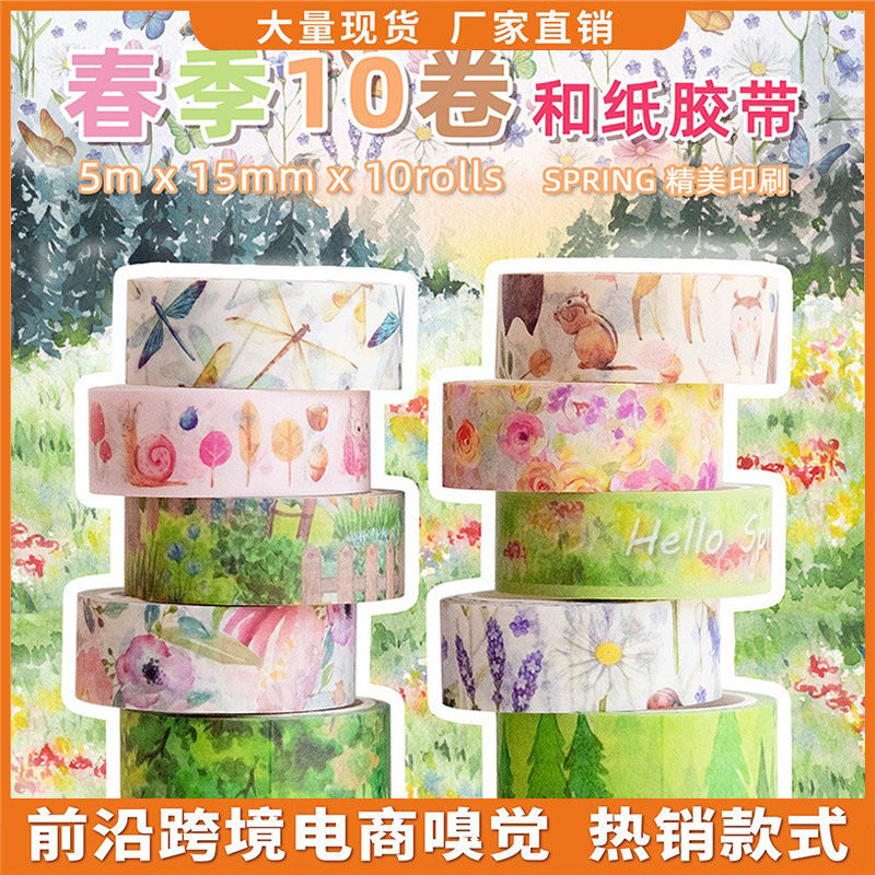 봄 10 롤과 종이 테이프 녹색 봄 꽃 잔디 창조적 인 손 계정 스티커 세트 새로운 뜨거운스토어 가기