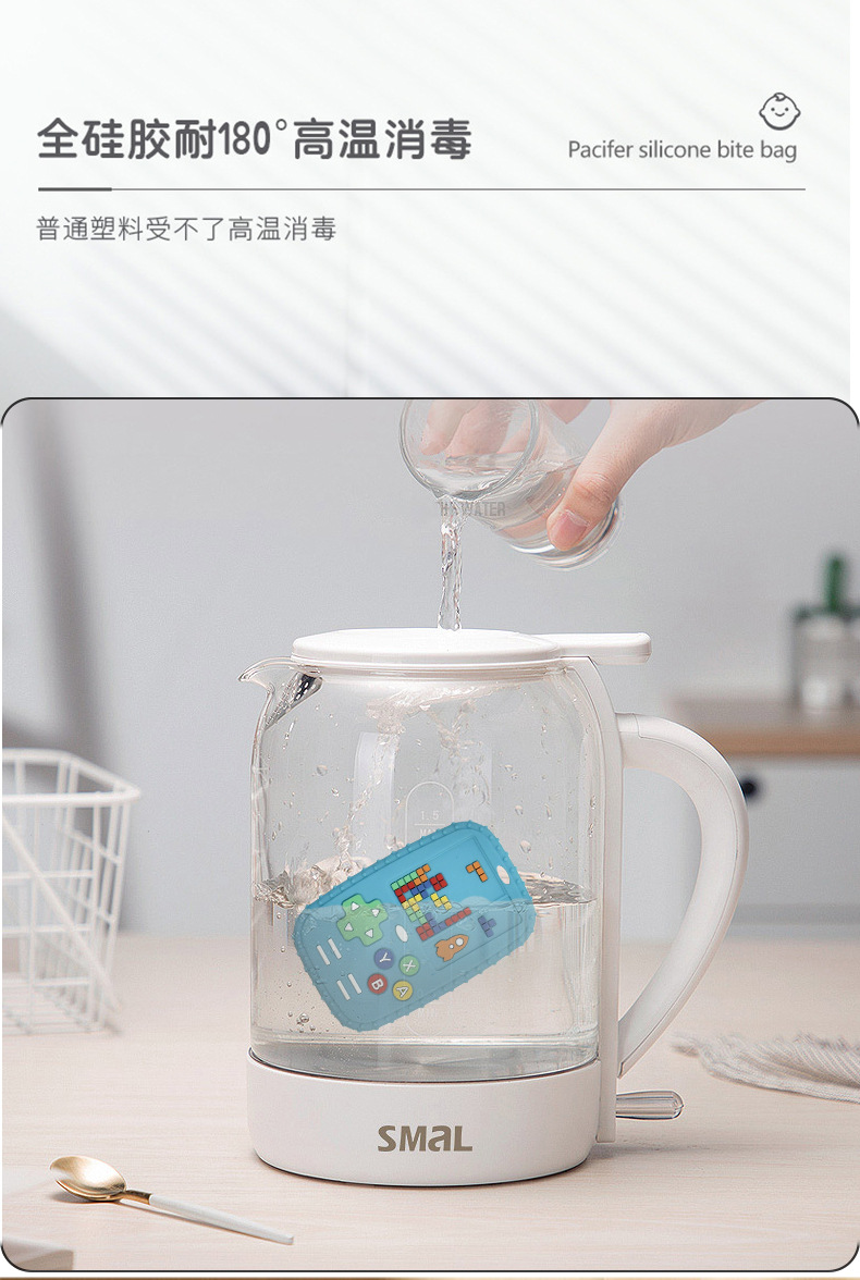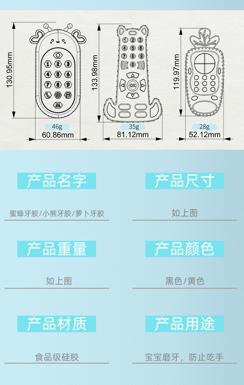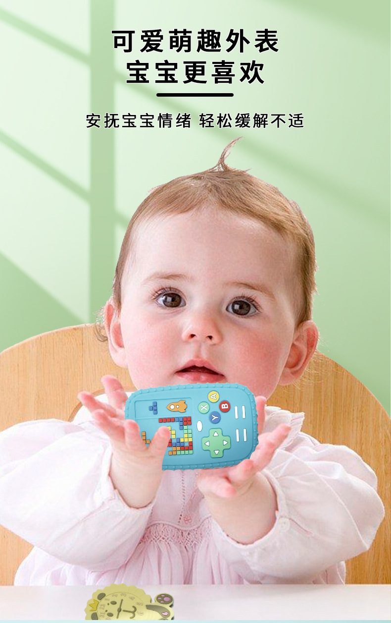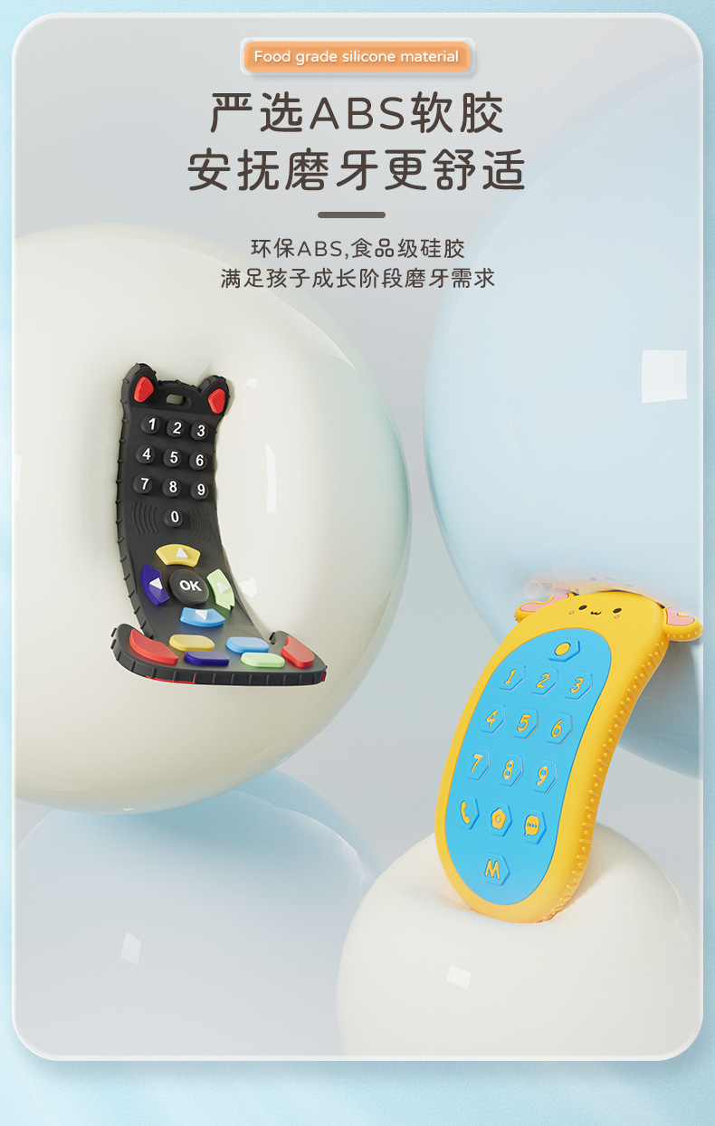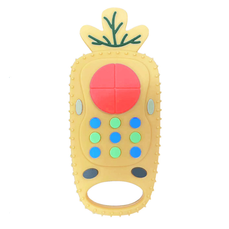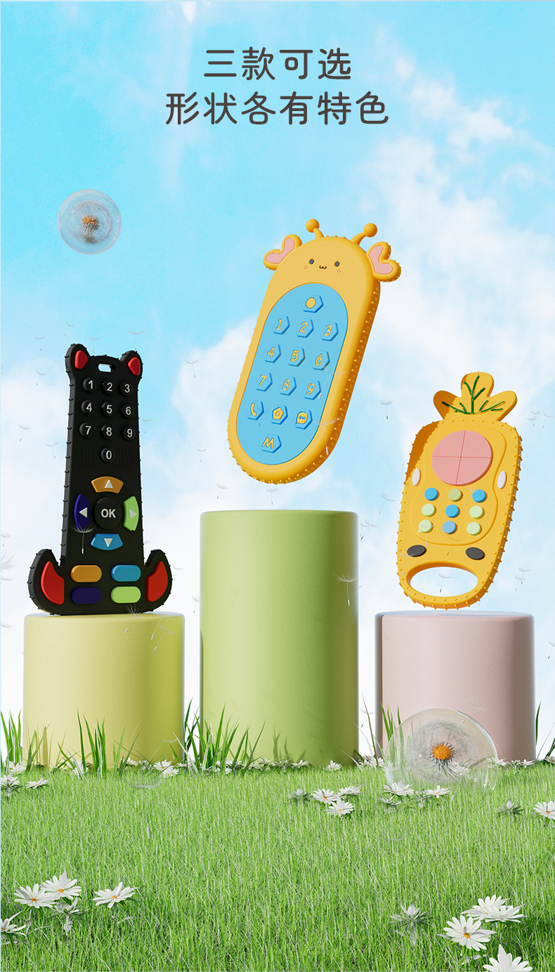 부드러운 실리콘 Teether 머리 장난감 신생아 진정 시뮬레이션 원격 제어 씹는 아기 씹는 음악 세트