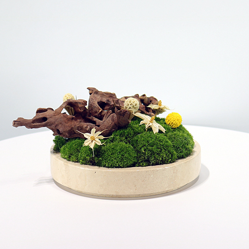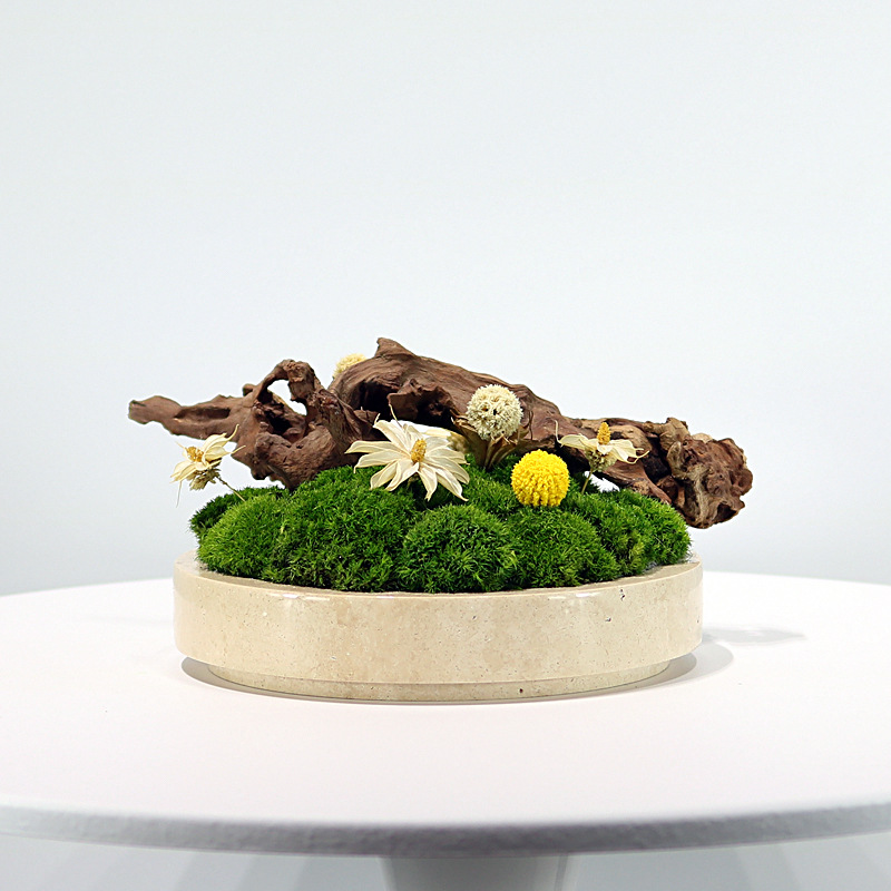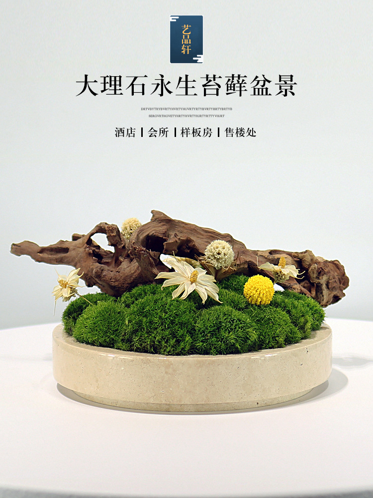 새로운 중국 스타일 대리석 영원한 이끼 죽은 나무 풍경 녹색 심기 꽃 예술 빛 럭셔리 현대 거실 커피 테이블 식탁 장식품스토어 가기