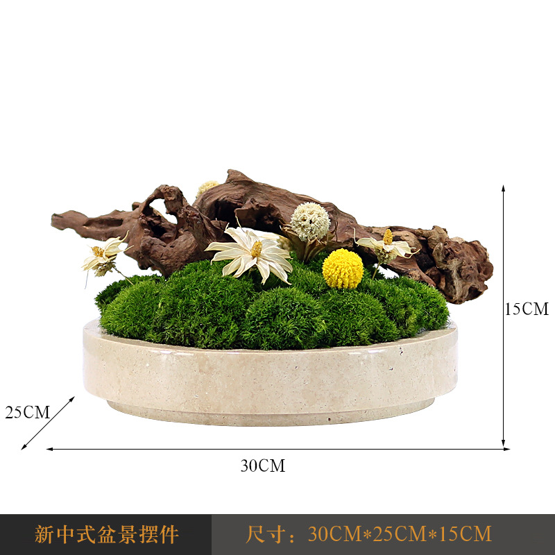 새로운 중국 스타일 대리석 영원한 이끼 죽은 나무 풍경 녹색 심기 꽃 예술 빛 럭셔리 현대 거실 커피 테이블 식탁 장식품