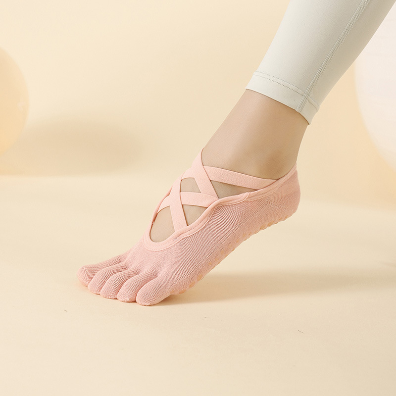 [New] 요가 양말 더블 크로스 여성용 미끄럼 방지 면 투명 보트 양말 트레이닝 트램폴린 필라테스 용품