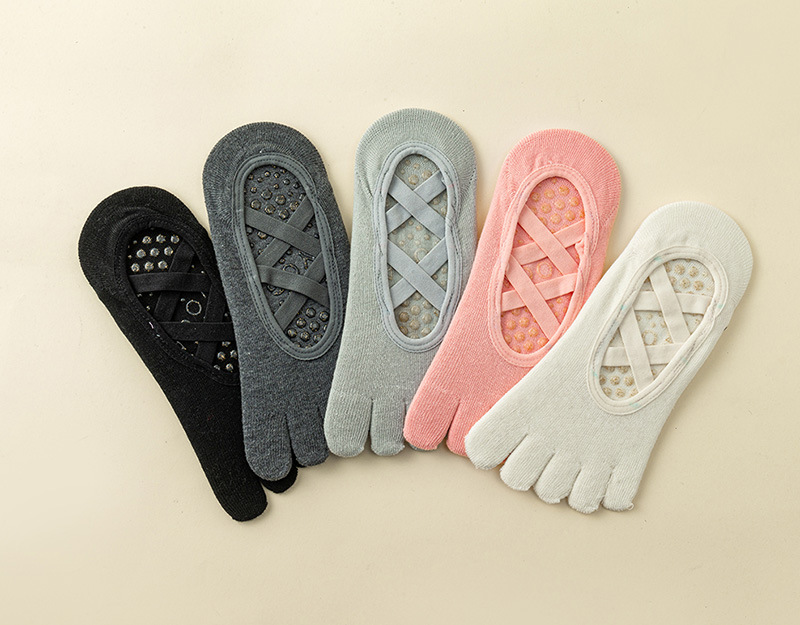 [New] 요가 양말 더블 크로스 여성용 미끄럼 방지 면 투명 보트 양말 트레이닝 트램폴린 필라테스 용품스토어 가기