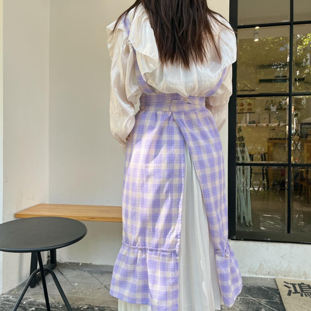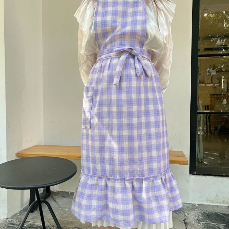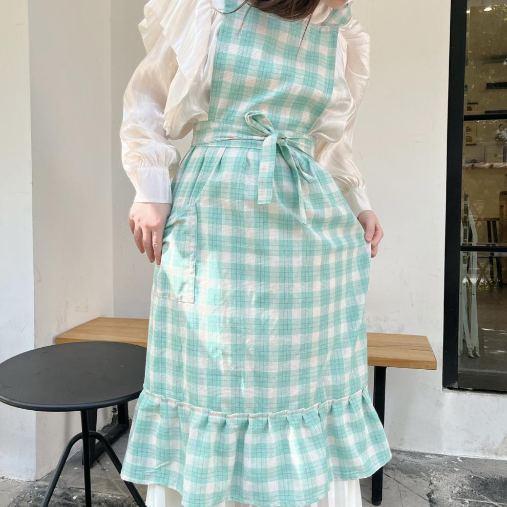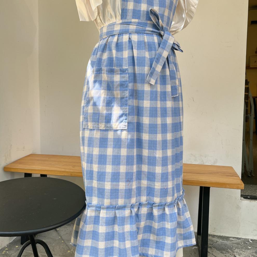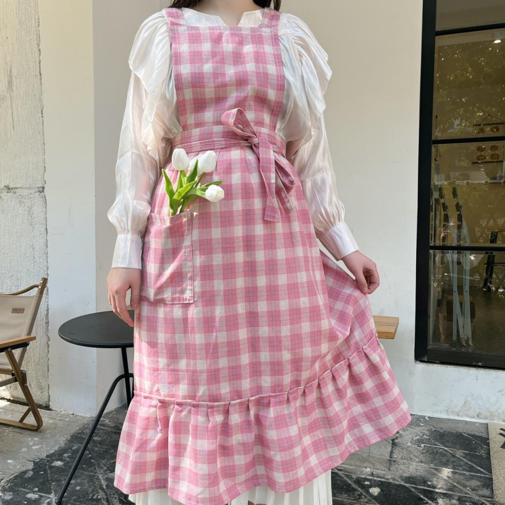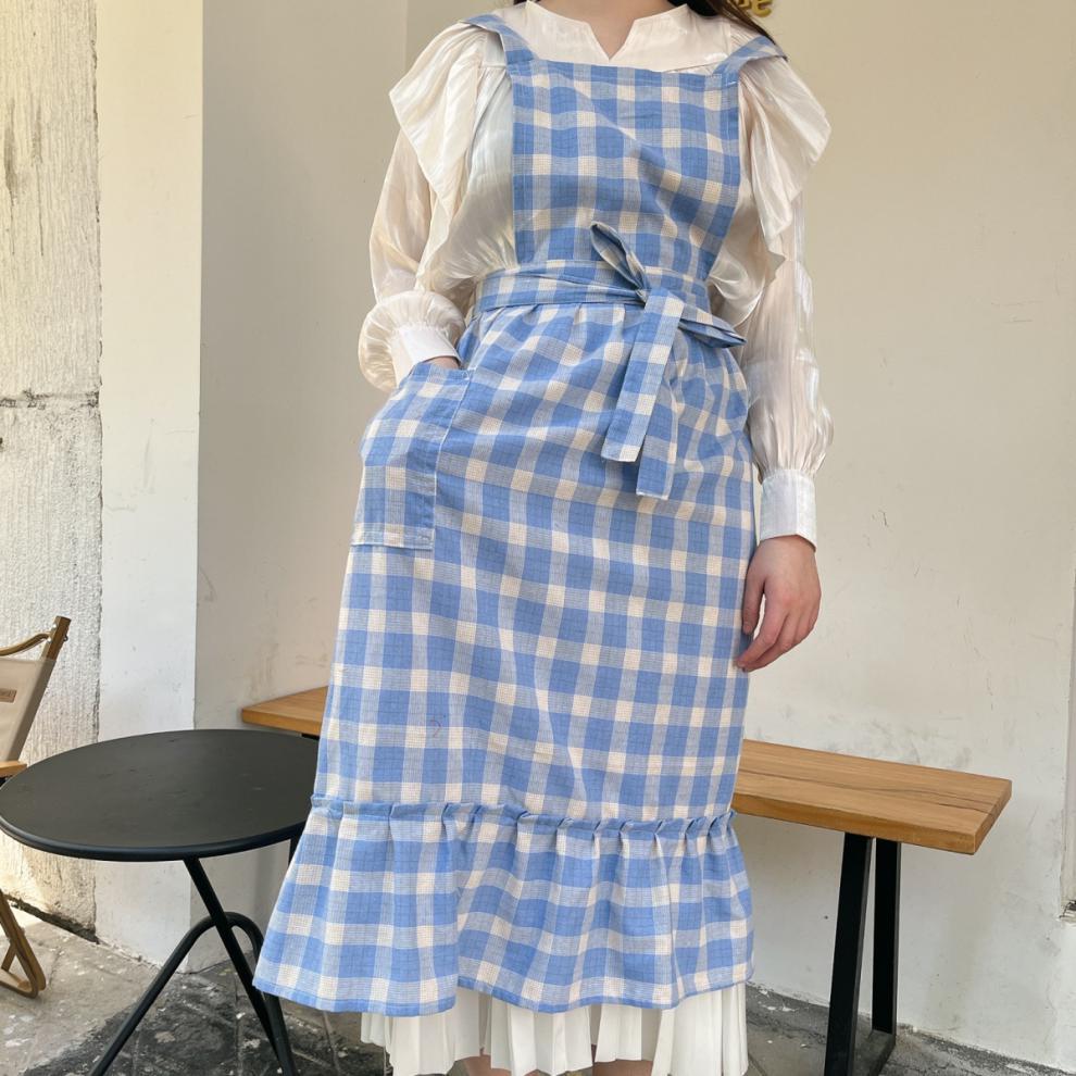 앞치마 인스 스튜디오 체크무늬 피쉬테일 플라워 아트 플리츠 문예 카페 아트 가든 작업복스토어 가기