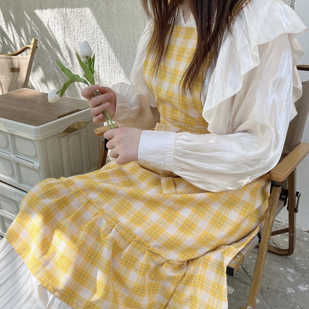 • 전신 체크 무늬 피쉬테일-옐로우